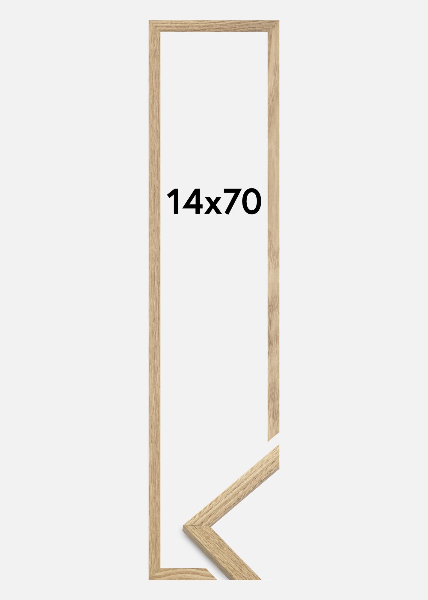 Rama jest wykonana z materiału MDF z foliowaną powierzchnią w kolorze dębu i ma cienki profil ramy o szerokości 14 mm. Jest dużo miejsca, aby uzupełnić zdjęcia luksusowym passe-partout, dzięki wewnętrznej głębokości ramy (głębokość felc) wynoszącej 12 mm.