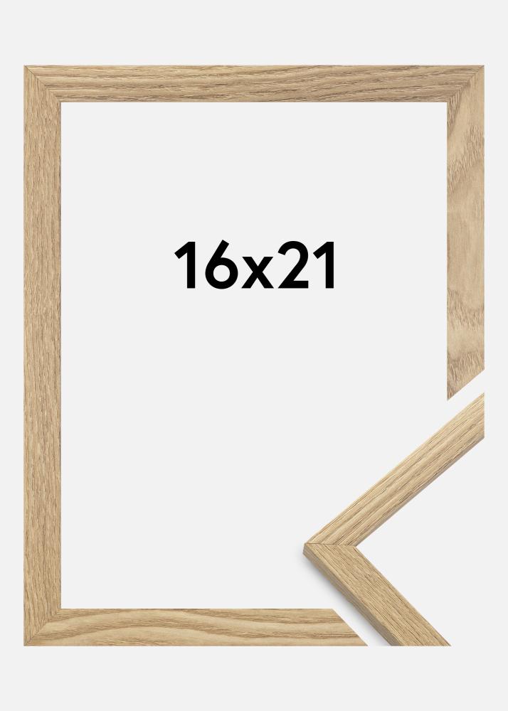 Rama jest wykonana z materiału MDF z foliowaną powierzchnią w kolorze dębu i ma cienki profil ramy o szerokości 14 mm. Jest dużo miejsca, aby uzupełnić zdjęcia luksusowym passe-partout, dzięki wewnętrznej głębokości ramy (głębokość felc) wynoszącej 12 mm.