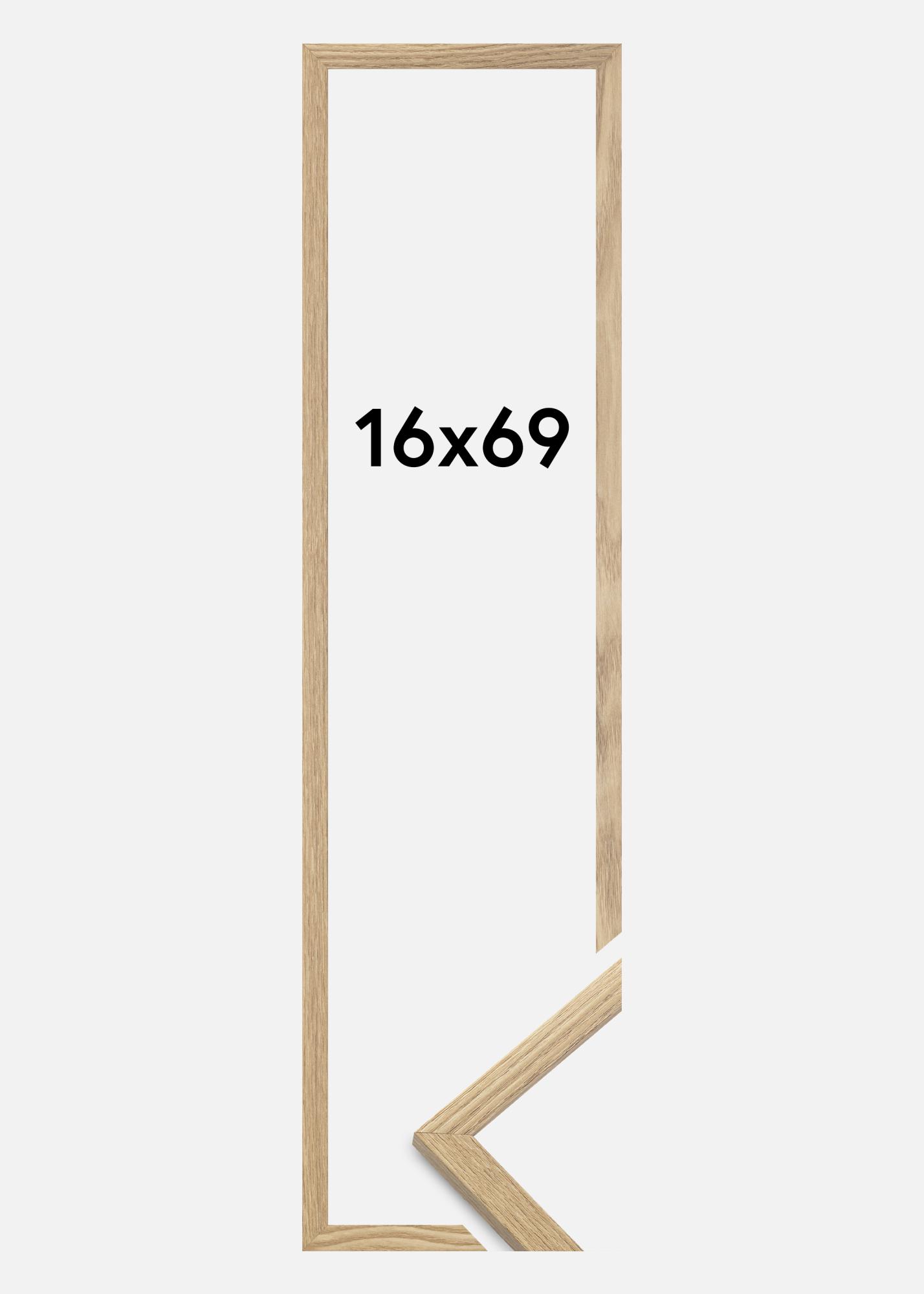 Rama jest wykonana z materiału MDF z foliowaną powierzchnią w kolorze dębu i ma cienki profil ramy o szerokości 14 mm. Jest dużo miejsca, aby uzupełnić zdjęcia luksusowym passe-partout, dzięki wewnętrznej głębokości ramy (głębokość felc) wynoszącej 12 mm.