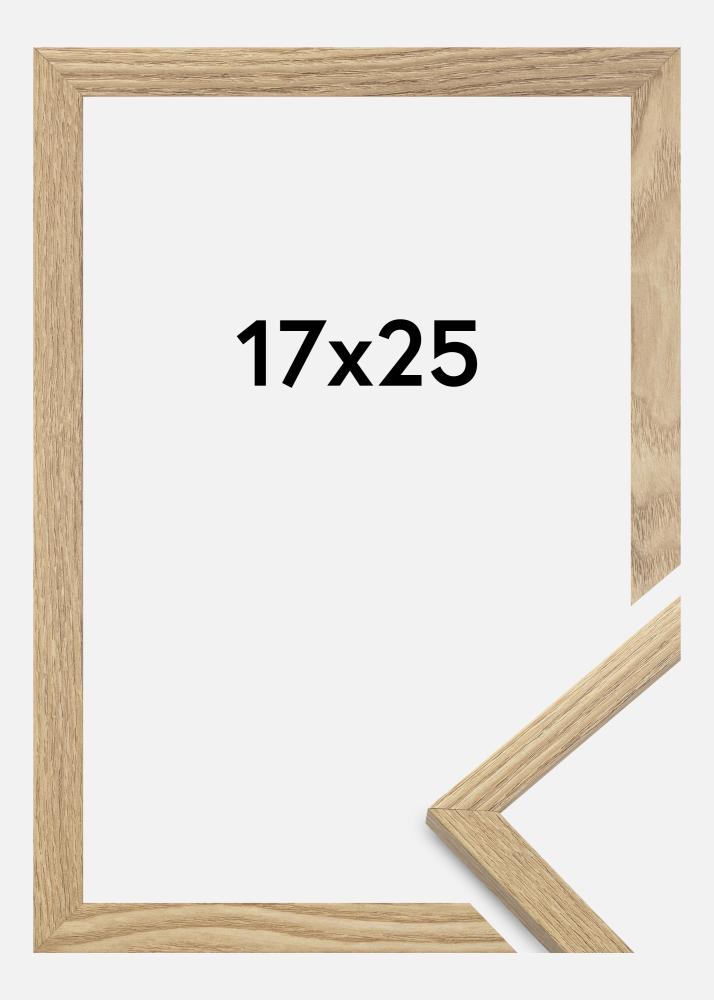 Rama jest wykonana z materiału MDF z foliowaną powierzchnią w kolorze dębu i ma cienki profil ramy o szerokości 14 mm. Jest dużo miejsca, aby uzupełnić zdjęcia luksusowym passe-partout, dzięki wewnętrznej głębokości ramy (głębokość felc) wynoszącej 12 mm.