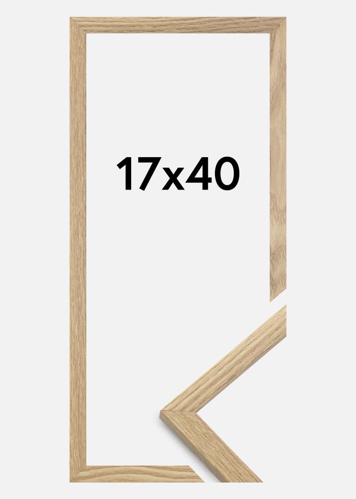 Rama jest wykonana z materiału MDF z foliowaną powierzchnią w kolorze dębu i ma cienki profil ramy o szerokości 14 mm. Jest dużo miejsca, aby uzupełnić zdjęcia luksusowym passe-partout, dzięki wewnętrznej głębokości ramy (głębokość felc) wynoszącej 12 mm.