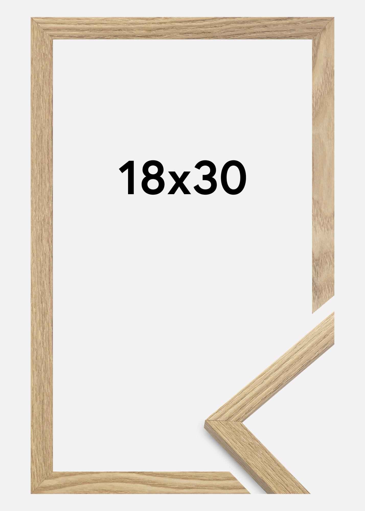 Rama jest wykonana z materiału MDF z foliowaną powierzchnią w kolorze dębu i ma cienki profil ramy o szerokości 14 mm. Jest dużo miejsca, aby uzupełnić zdjęcia luksusowym passe-partout, dzięki wewnętrznej głębokości ramy (głębokość felc) wynoszącej 12 mm.