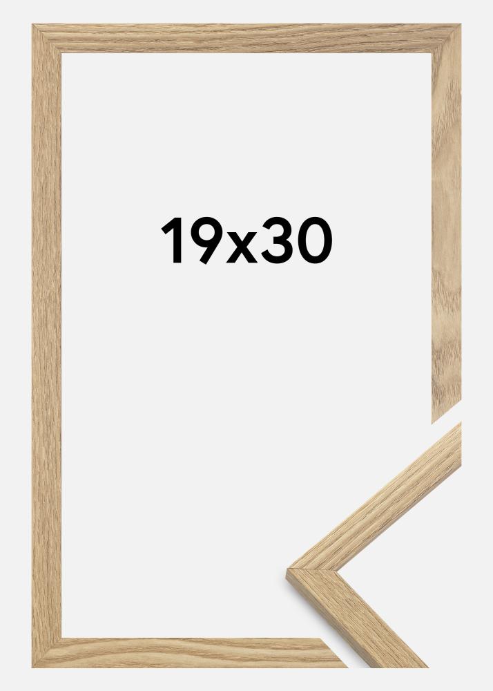 Rama jest wykonana z materiału MDF z foliowaną powierzchnią w kolorze dębu i ma cienki profil ramy o szerokości 14 mm. Jest dużo miejsca, aby uzupełnić zdjęcia luksusowym passe-partout, dzięki wewnętrznej głębokości ramy (głębokość felc) wynoszącej 12 mm.