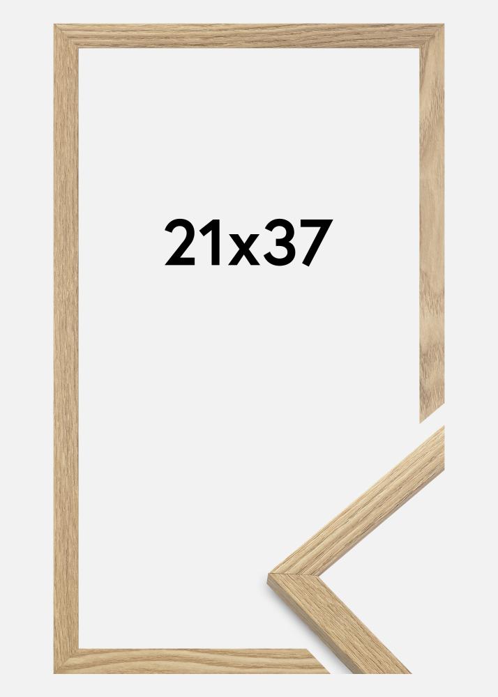 Rama jest wykonana z materiału MDF z foliowaną powierzchnią w kolorze dębu i ma cienki profil ramy o szerokości 14 mm. Jest dużo miejsca, aby uzupełnić zdjęcia luksusowym passe-partout, dzięki wewnętrznej głębokości ramy (głębokość felc) wynoszącej 12 mm.