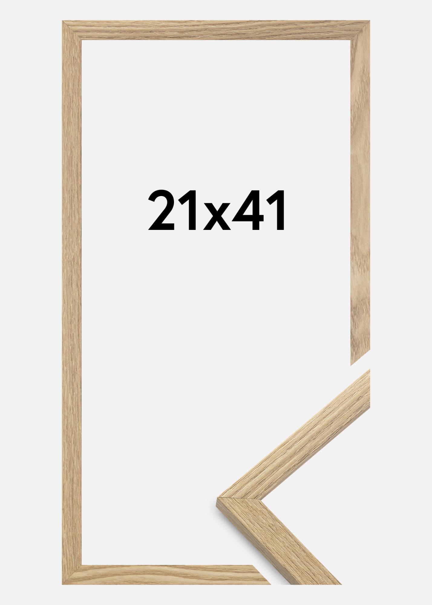 Rama jest wykonana z materiału MDF z foliowaną powierzchnią w kolorze dębu i ma cienki profil ramy o szerokości 14 mm. Jest dużo miejsca, aby uzupełnić zdjęcia luksusowym passe-partout, dzięki wewnętrznej głębokości ramy (głębokość felc) wynoszącej 12 mm.