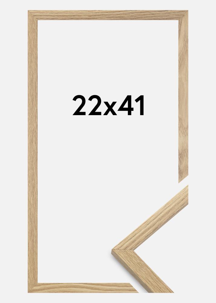 Rama jest wykonana z materiału MDF z foliowaną powierzchnią w kolorze dębu i ma cienki profil ramy o szerokości 14 mm. Jest dużo miejsca, aby uzupełnić zdjęcia luksusowym passe-partout, dzięki wewnętrznej głębokości ramy (głębokość felc) wynoszącej 12 mm.