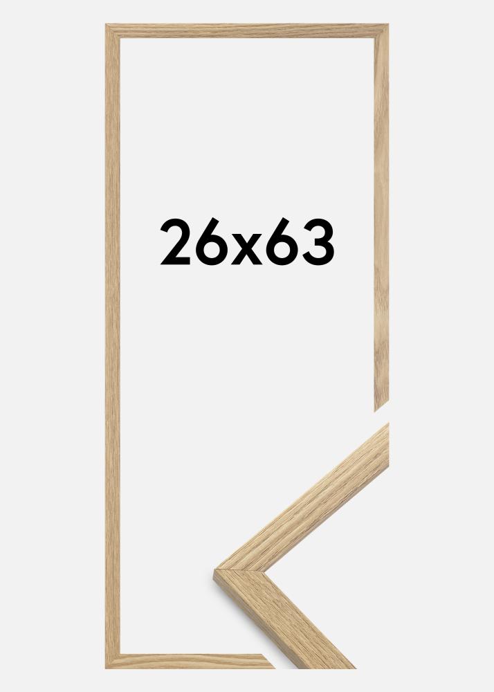 Rama jest wykonana z materiału MDF z foliowaną powierzchnią w kolorze dębu i ma cienki profil ramy o szerokości 14 mm. Jest dużo miejsca, aby uzupełnić zdjęcia luksusowym passe-partout, dzięki wewnętrznej głębokości ramy (głębokość felc) wynoszącej 12 mm.