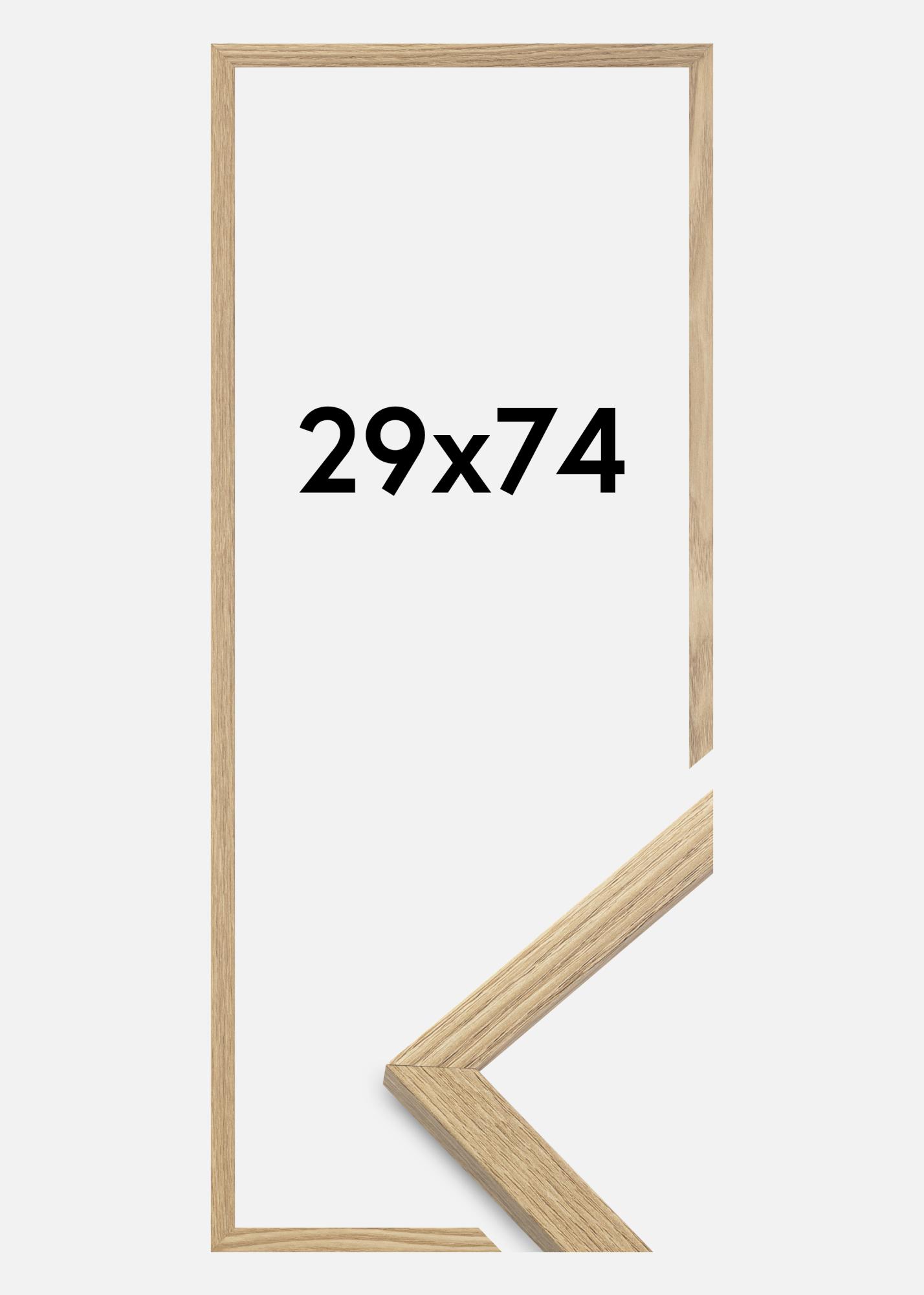 Rama jest wykonana z materiału MDF z foliowaną powierzchnią w kolorze dębu i ma cienki profil ramy o szerokości 14 mm. Jest dużo miejsca, aby uzupełnić zdjęcia luksusowym passe-partout, dzięki wewnętrznej głębokości ramy (głębokość felc) wynoszącej 12 mm.