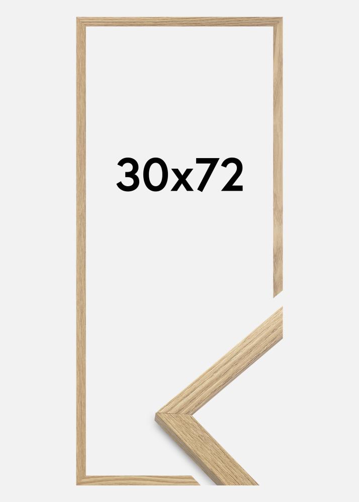 Rama jest wykonana z materiału MDF z foliowaną powierzchnią w kolorze dębu i ma cienki profil ramy o szerokości 14 mm. Jest dużo miejsca, aby uzupełnić zdjęcia luksusowym passe-partout, dzięki wewnętrznej głębokości ramy (głębokość felc) wynoszącej 12 mm.