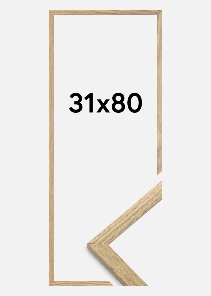 Rama jest wykonana z materiału MDF z foliowaną powierzchnią w kolorze dębu i ma cienki profil ramy o szerokości 14 mm. Jest dużo miejsca, aby uzupełnić zdjęcia luksusowym passe-partout, dzięki wewnętrznej głębokości ramy (głębokość felc) wynoszącej 12 mm.