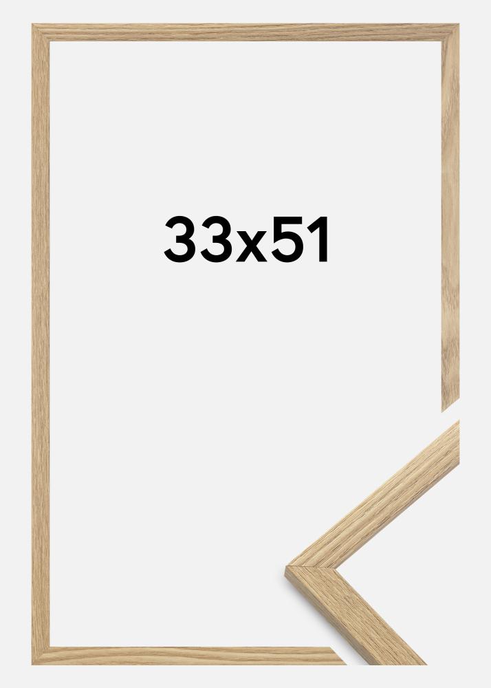 Rama jest wykonana z materiału MDF z foliowaną powierzchnią w kolorze dębu i ma cienki profil ramy o szerokości 14 mm. Jest dużo miejsca, aby uzupełnić zdjęcia luksusowym passe-partout, dzięki wewnętrznej głębokości ramy (głębokość felc) wynoszącej 12 mm.