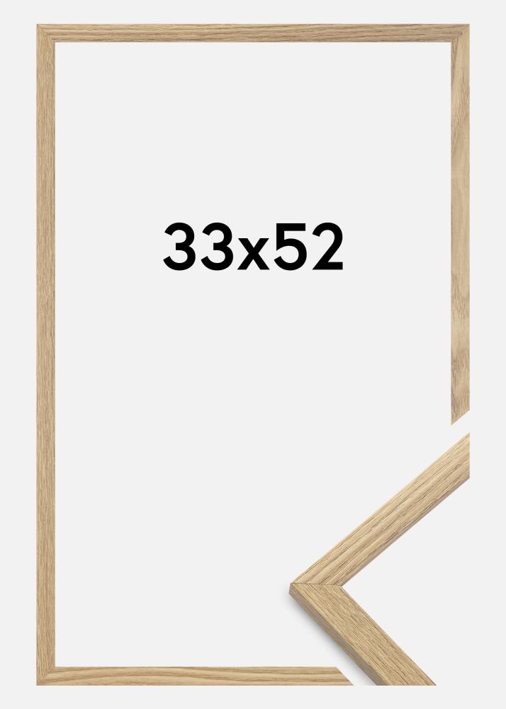 Rama jest wykonana z materiału MDF z foliowaną powierzchnią w kolorze dębu i ma cienki profil ramy o szerokości 14 mm. Jest dużo miejsca, aby uzupełnić zdjęcia luksusowym passe-partout, dzięki wewnętrznej głębokości ramy (głębokość felc) wynoszącej 12 mm.