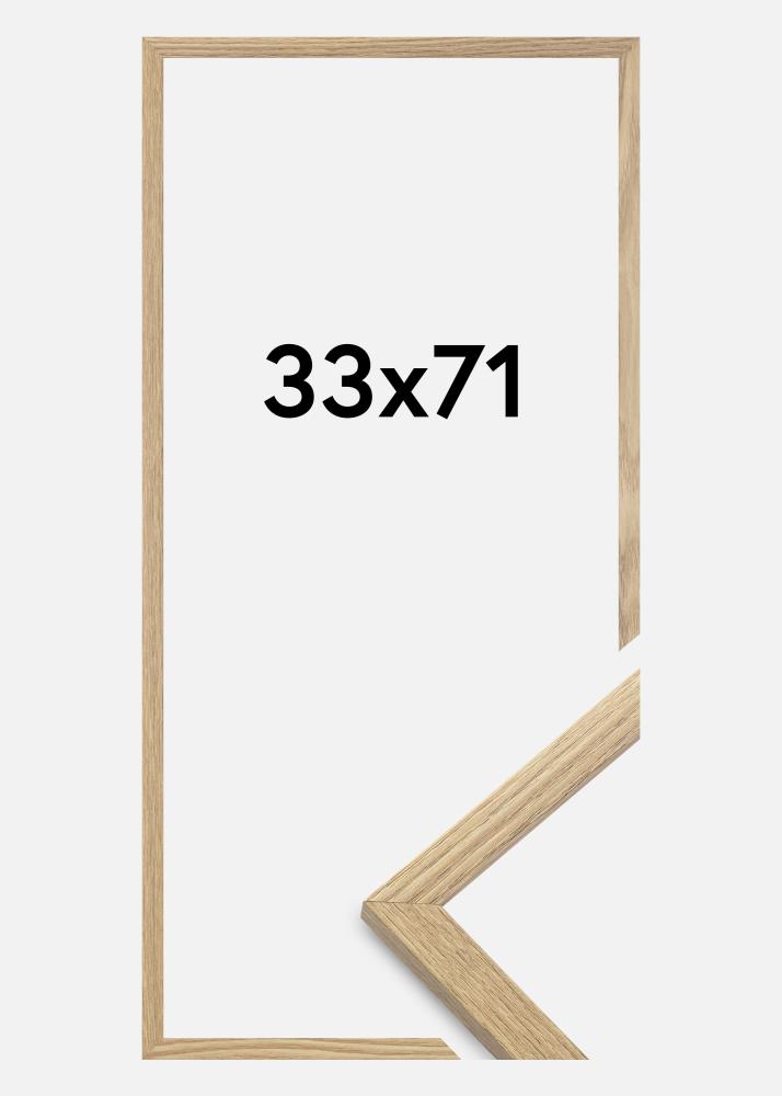 Rama jest wykonana z materiału MDF z foliowaną powierzchnią w kolorze dębu i ma cienki profil ramy o szerokości 14 mm. Jest dużo miejsca, aby uzupełnić zdjęcia luksusowym passe-partout, dzięki wewnętrznej głębokości ramy (głębokość felc) wynoszącej 12 mm.