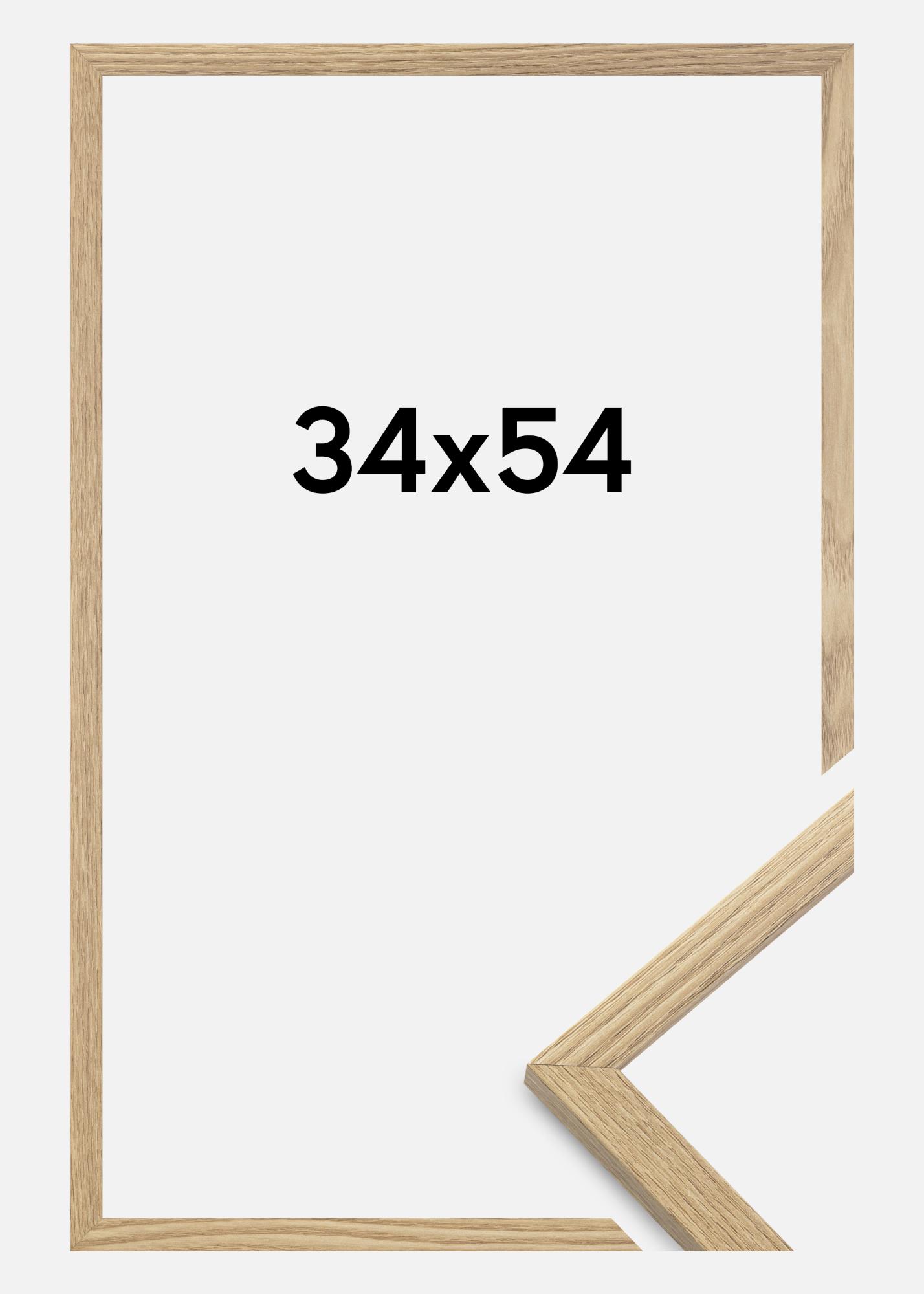Rama jest wykonana z materiału MDF z foliowaną powierzchnią w kolorze dębu i ma cienki profil ramy o szerokości 14 mm. Jest dużo miejsca, aby uzupełnić zdjęcia luksusowym passe-partout, dzięki wewnętrznej głębokości ramy (głębokość felc) wynoszącej 12 mm.