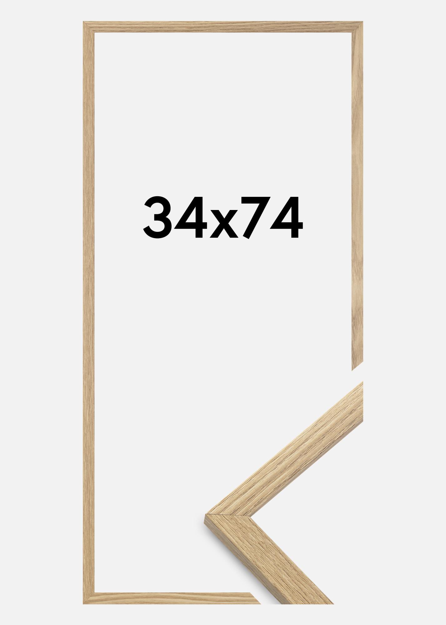 Rama jest wykonana z materiału MDF z foliowaną powierzchnią w kolorze dębu i ma cienki profil ramy o szerokości 14 mm. Jest dużo miejsca, aby uzupełnić zdjęcia luksusowym passe-partout, dzięki wewnętrznej głębokości ramy (głębokość felc) wynoszącej 12 mm.