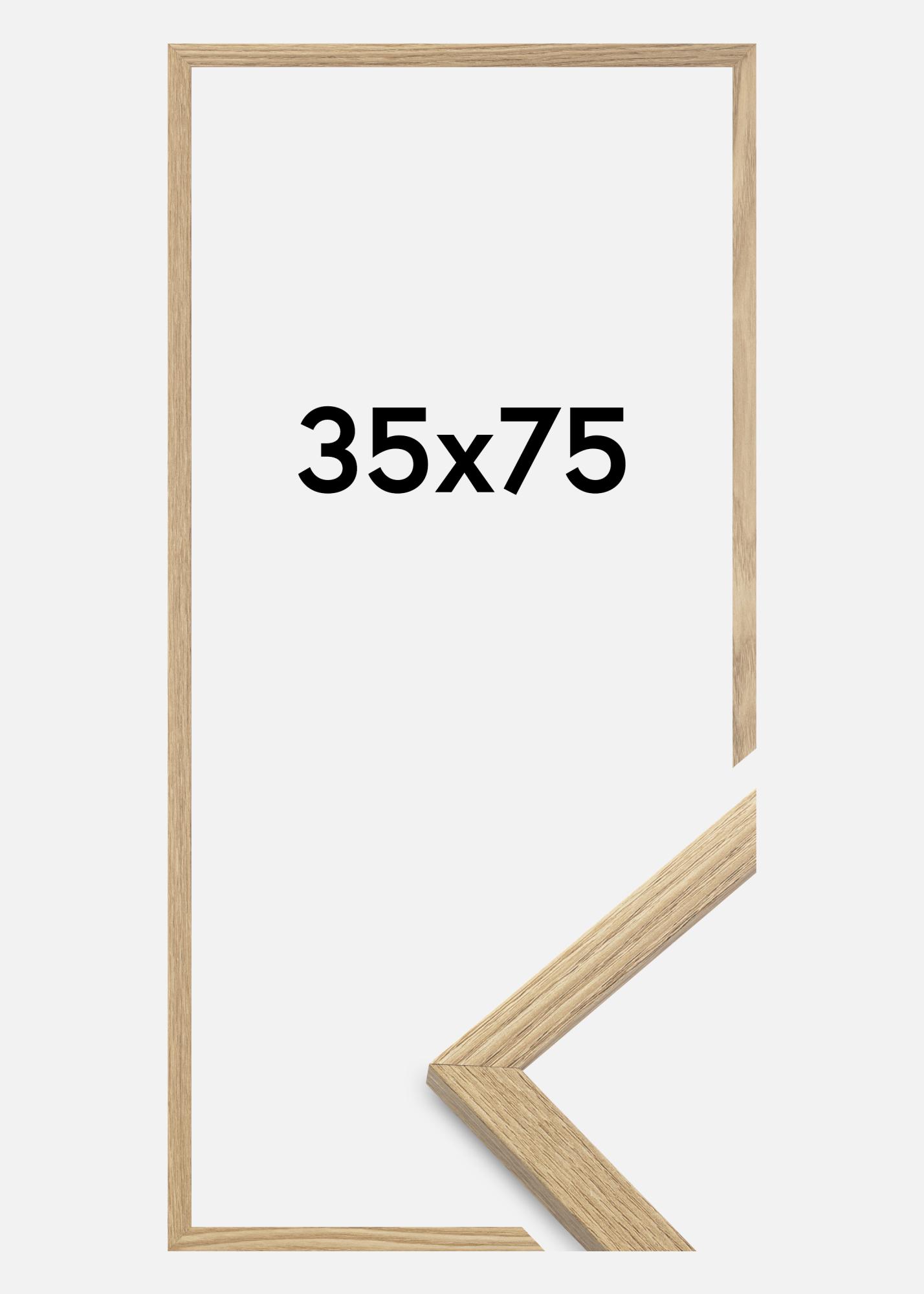 Rama jest wykonana z materiału MDF z foliowaną powierzchnią w kolorze dębu i ma cienki profil ramy o szerokości 14 mm. Jest dużo miejsca, aby uzupełnić zdjęcia luksusowym passe-partout, dzięki wewnętrznej głębokości ramy (głębokość felc) wynoszącej 12 mm.