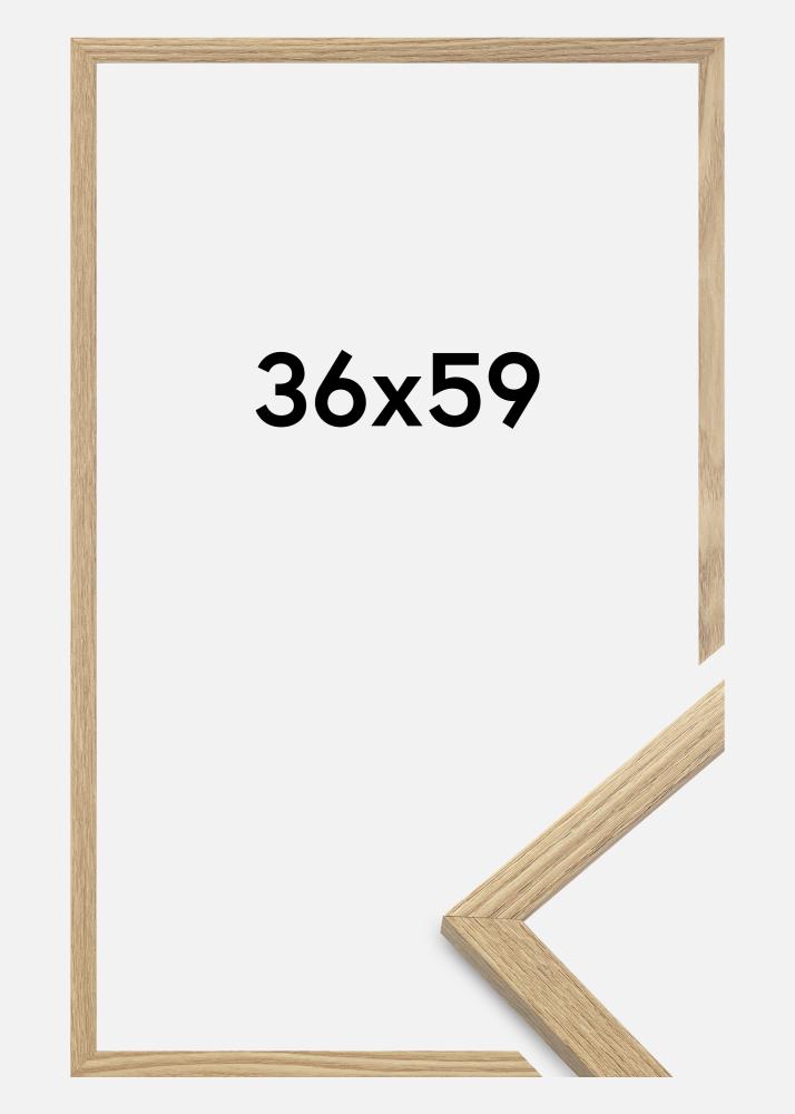 Rama jest wykonana z materiału MDF z foliowaną powierzchnią w kolorze dębu i ma cienki profil ramy o szerokości 14 mm. Jest dużo miejsca, aby uzupełnić zdjęcia luksusowym passe-partout, dzięki wewnętrznej głębokości ramy (głębokość felc) wynoszącej 12 mm.