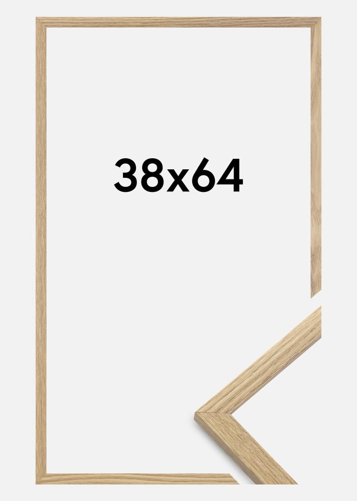 Rama jest wykonana z materiału MDF z foliowaną powierzchnią w kolorze dębu i ma cienki profil ramy o szerokości 14 mm. Jest dużo miejsca, aby uzupełnić zdjęcia luksusowym passe-partout, dzięki wewnętrznej głębokości ramy (głębokość felc) wynoszącej 12 mm.