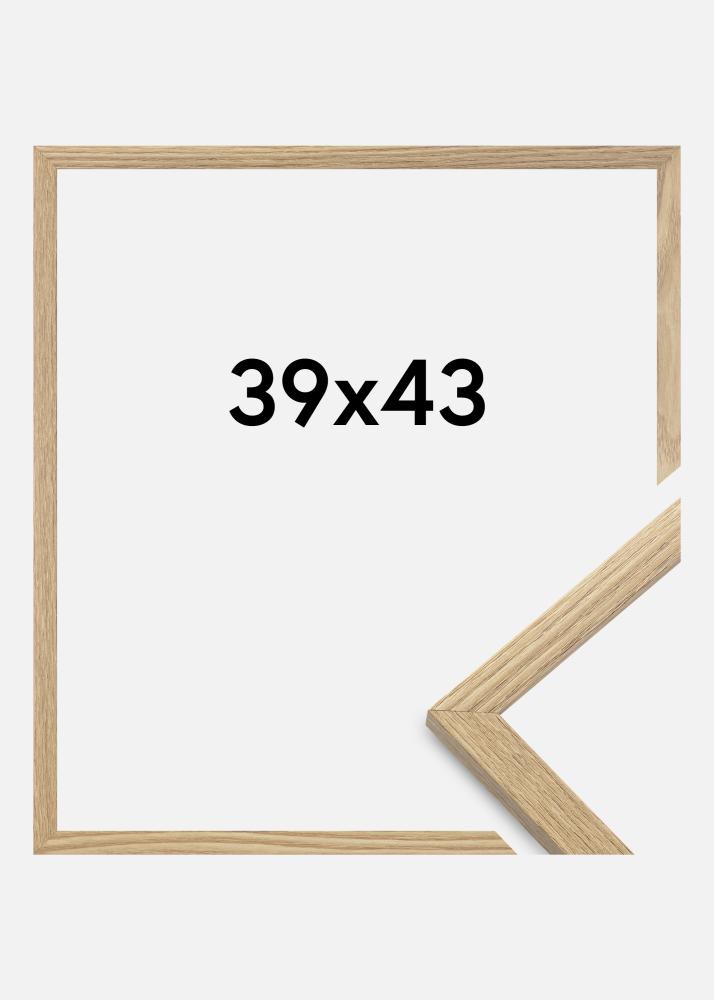 Rama jest wykonana z materiału MDF z foliowaną powierzchnią w kolorze dębu i ma cienki profil ramy o szerokości 14 mm. Jest dużo miejsca, aby uzupełnić zdjęcia luksusowym passe-partout, dzięki wewnętrznej głębokości ramy (głębokość felc) wynoszącej 12 mm.