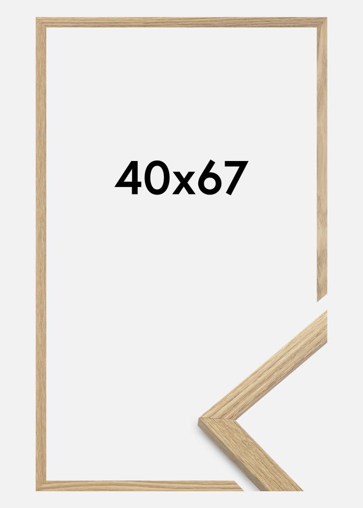 Rama jest wykonana z materiału MDF z foliowaną powierzchnią w kolorze dębu i ma cienki profil ramy o szerokości 14 mm. Jest dużo miejsca, aby uzupełnić zdjęcia luksusowym passe-partout, dzięki wewnętrznej głębokości ramy (głębokość felc) wynoszącej 12 mm.