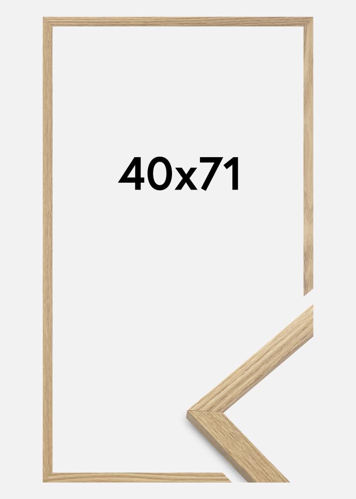 Rama jest wykonana z materiału MDF z foliowaną powierzchnią w kolorze dębu i ma cienki profil ramy o szerokości 14 mm. Jest dużo miejsca, aby uzupełnić zdjęcia luksusowym passe-partout, dzięki wewnętrznej głębokości ramy (głębokość felc) wynoszącej 12 mm.