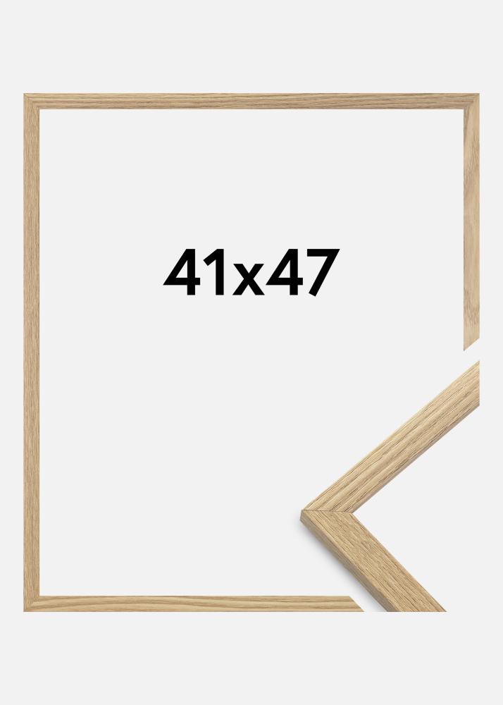 Rama jest wykonana z materiału MDF z foliowaną powierzchnią w kolorze dębu i ma cienki profil ramy o szerokości 14 mm. Jest dużo miejsca, aby uzupełnić zdjęcia luksusowym passe-partout, dzięki wewnętrznej głębokości ramy (głębokość felc) wynoszącej 12 mm.