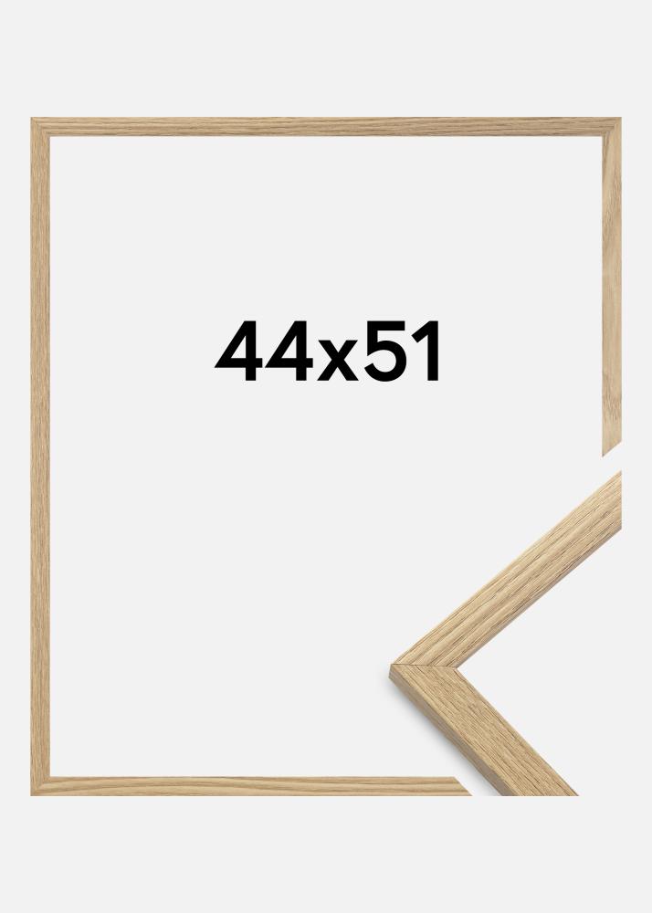 Rama jest wykonana z materiału MDF z foliowaną powierzchnią w kolorze dębu i ma cienki profil ramy o szerokości 14 mm. Jest dużo miejsca, aby uzupełnić zdjęcia luksusowym passe-partout, dzięki wewnętrznej głębokości ramy (głębokość felc) wynoszącej 12 mm.