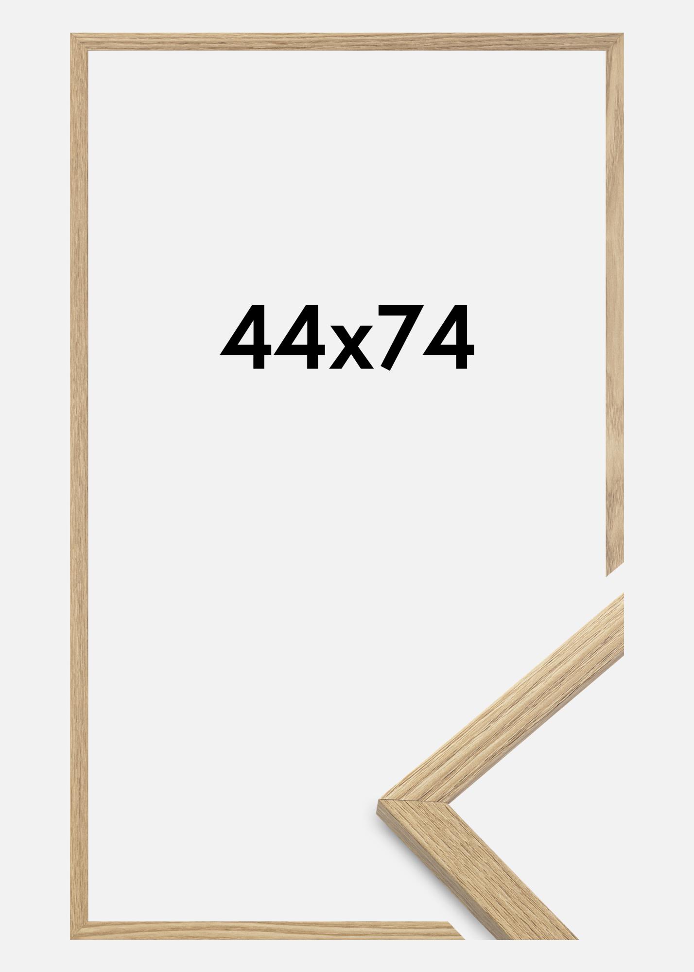 Rama jest wykonana z materiału MDF z foliowaną powierzchnią w kolorze dębu i ma cienki profil ramy o szerokości 14 mm. Jest dużo miejsca, aby uzupełnić zdjęcia luksusowym passe-partout, dzięki wewnętrznej głębokości ramy (głębokość felc) wynoszącej 12 mm.
