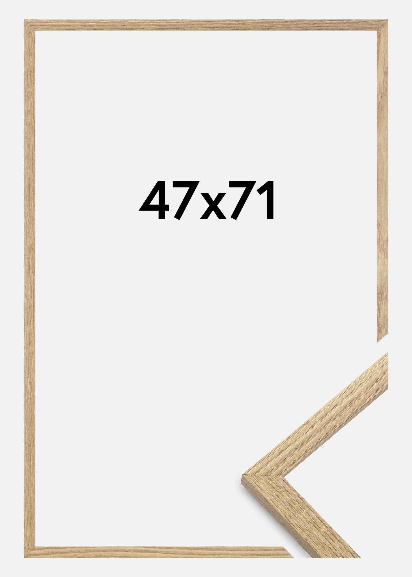 Rama jest wykonana z materiału MDF z foliowaną powierzchnią w kolorze dębu i ma cienki profil ramy o szerokości 14 mm. Jest dużo miejsca, aby uzupełnić zdjęcia luksusowym passe-partout, dzięki wewnętrznej głębokości ramy (głębokość felc) wynoszącej 12 mm.