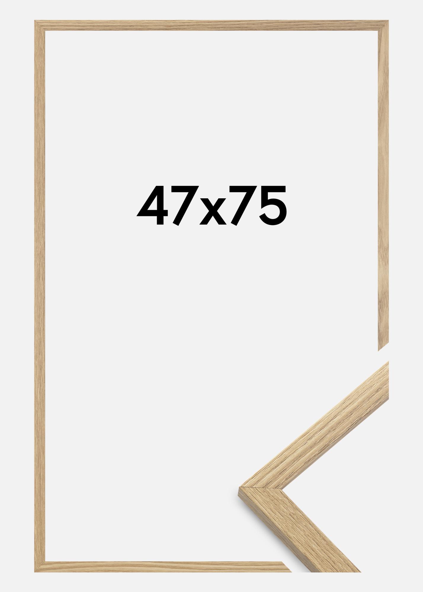 Rama jest wykonana z materiału MDF z foliowaną powierzchnią w kolorze dębu i ma cienki profil ramy o szerokości 14 mm. Jest dużo miejsca, aby uzupełnić zdjęcia luksusowym passe-partout, dzięki wewnętrznej głębokości ramy (głębokość felc) wynoszącej 12 mm.