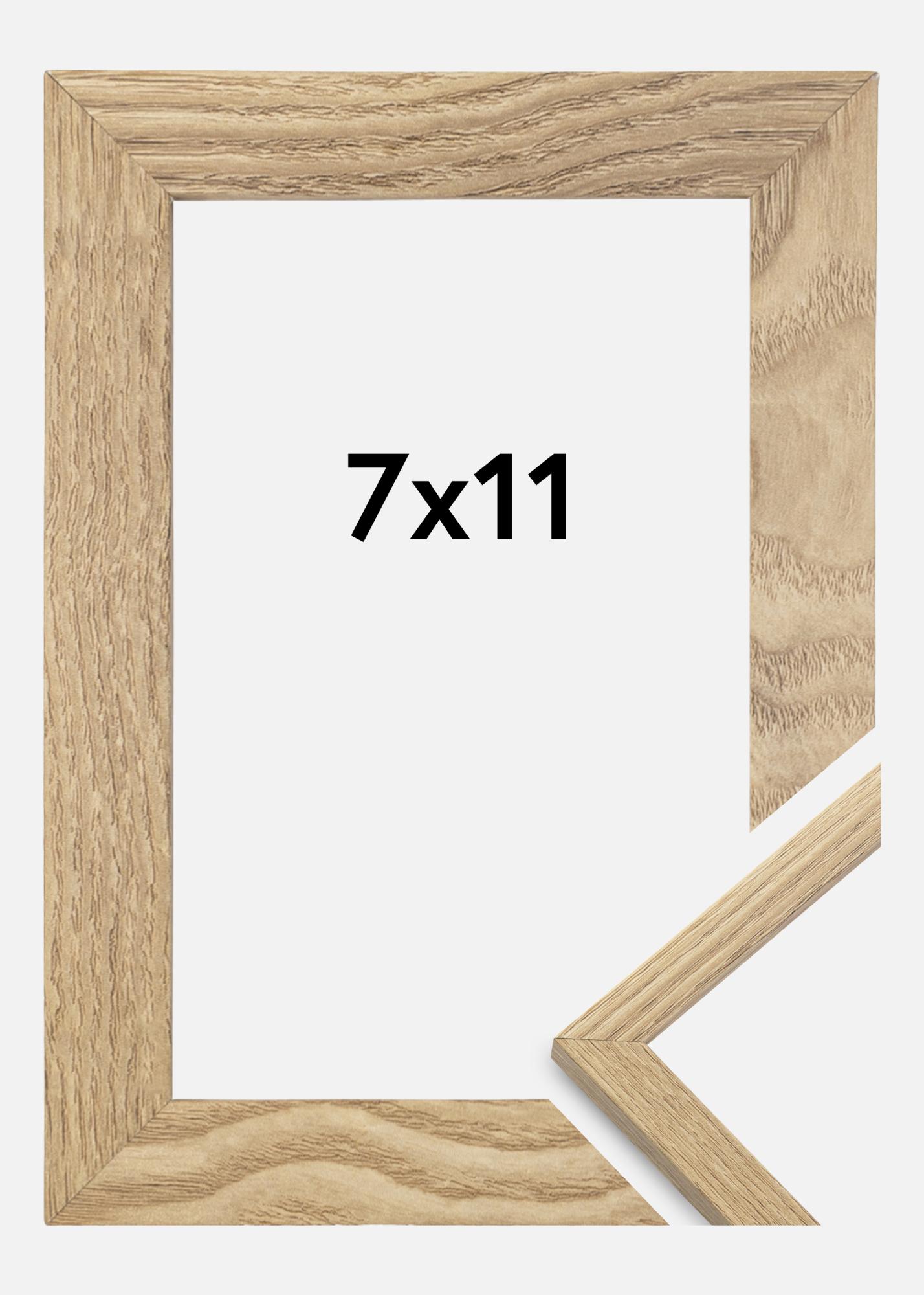 Rama jest wykonana z materiału MDF z foliowaną powierzchnią w kolorze dębu i ma cienki profil ramy o szerokości 14 mm. Jest dużo miejsca, aby uzupełnić zdjęcia luksusowym passe-partout, dzięki wewnętrznej głębokości ramy (głębokość felc) wynoszącej 12 mm.