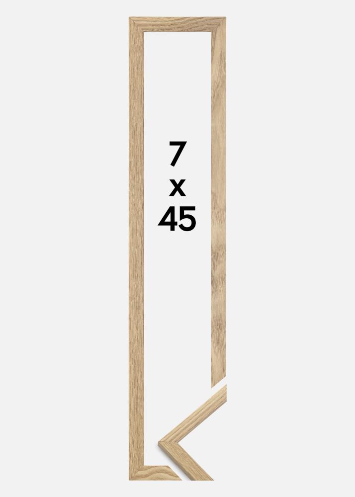 Rama jest wykonana z materiału MDF z foliowaną powierzchnią w kolorze dębu i ma cienki profil ramy o szerokości 14 mm. Jest dużo miejsca, aby uzupełnić zdjęcia luksusowym passe-partout, dzięki wewnętrznej głębokości ramy (głębokość felc) wynoszącej 12 mm.