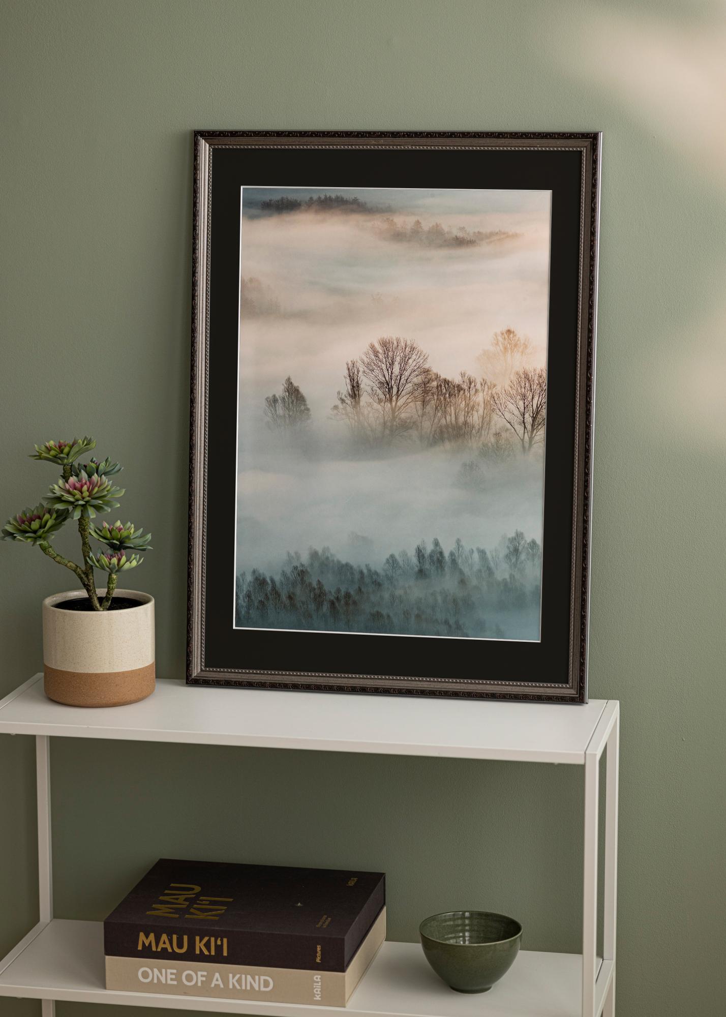 Czarny kolor passe-partout uzupełnia obraz i przyciąga wzrok widza na motyw, jednocześnie chroniąc dzieło sztuki przed dotknięciem szkła. Rama ma matowe wykończenie, które nadaje wystrój wnętrza wyrafinowanego charakteru. Dodatkowo jest wyposażona w dołączone metalowe wieszaki z tyłu, co ułatwia zawieszenie obrazu zarówno poziomo, jak i pionowo.