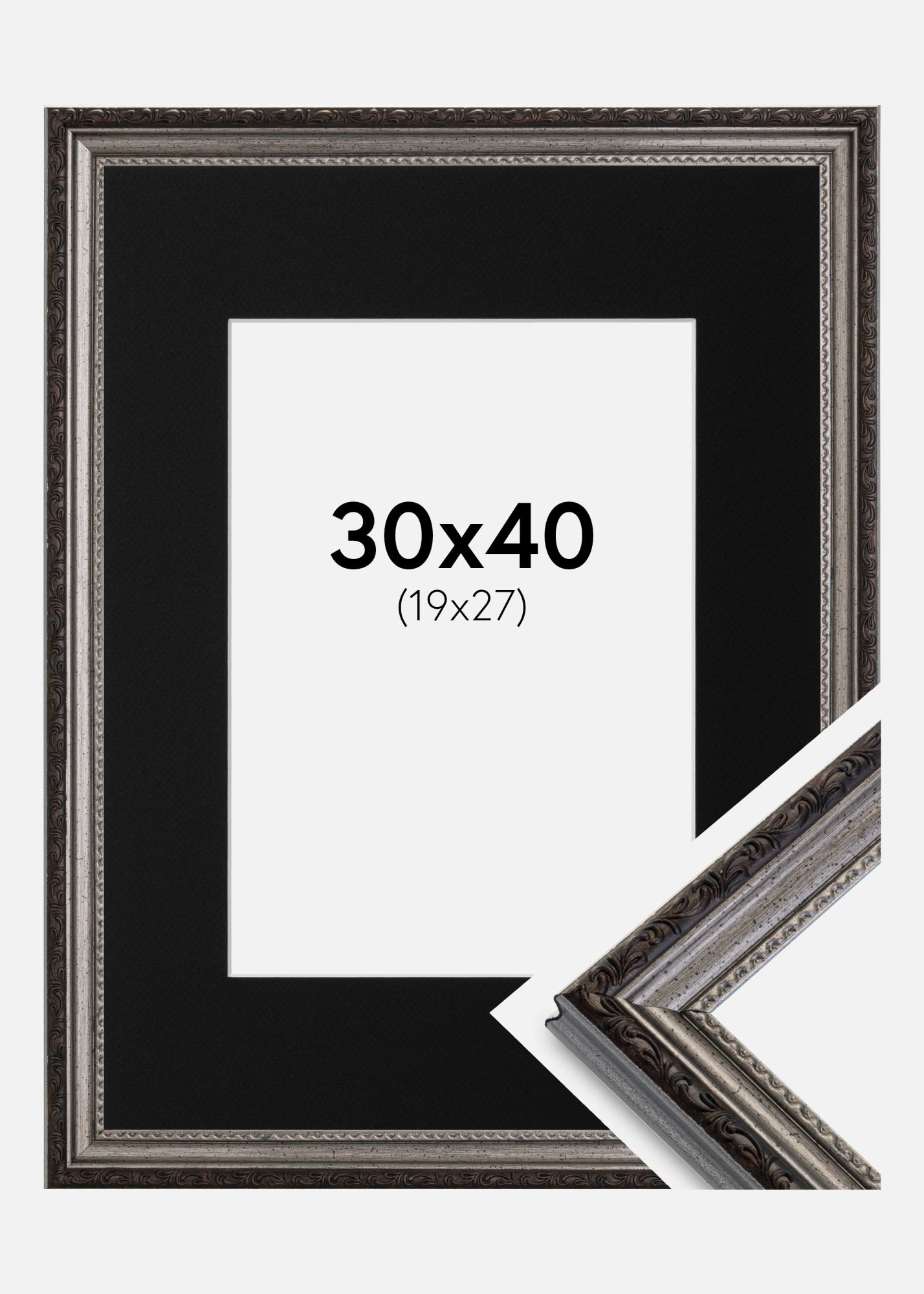 Rama Abisko Srebrny 30x40 cm - Passe-patrout Czarny 20x28 cm