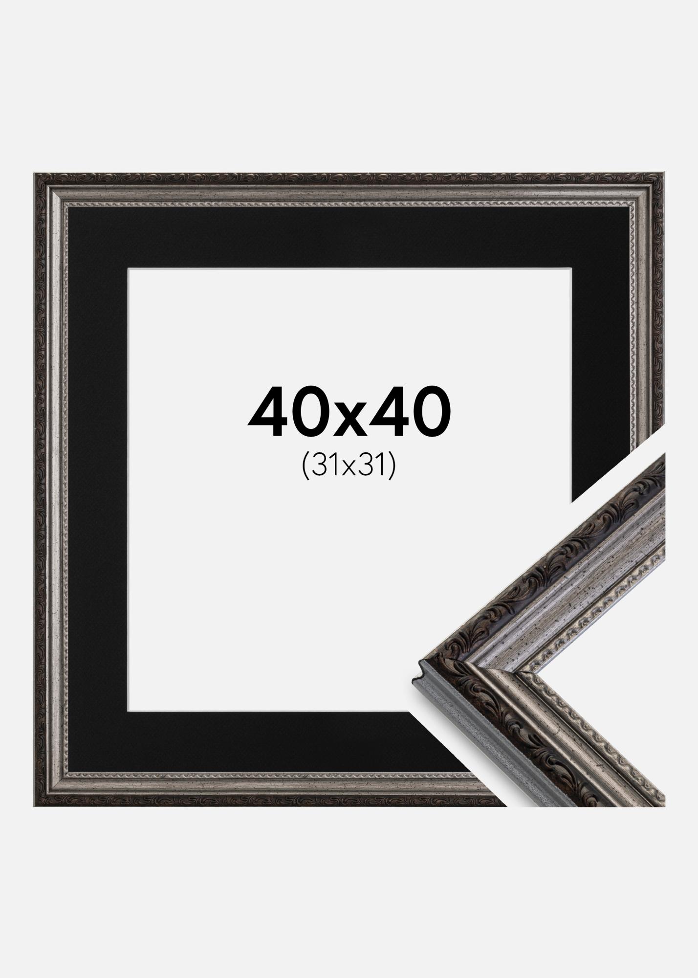 Rama Abisko Srebrny 40x40 cm - Passe-patrout Czarny 32x32 cm