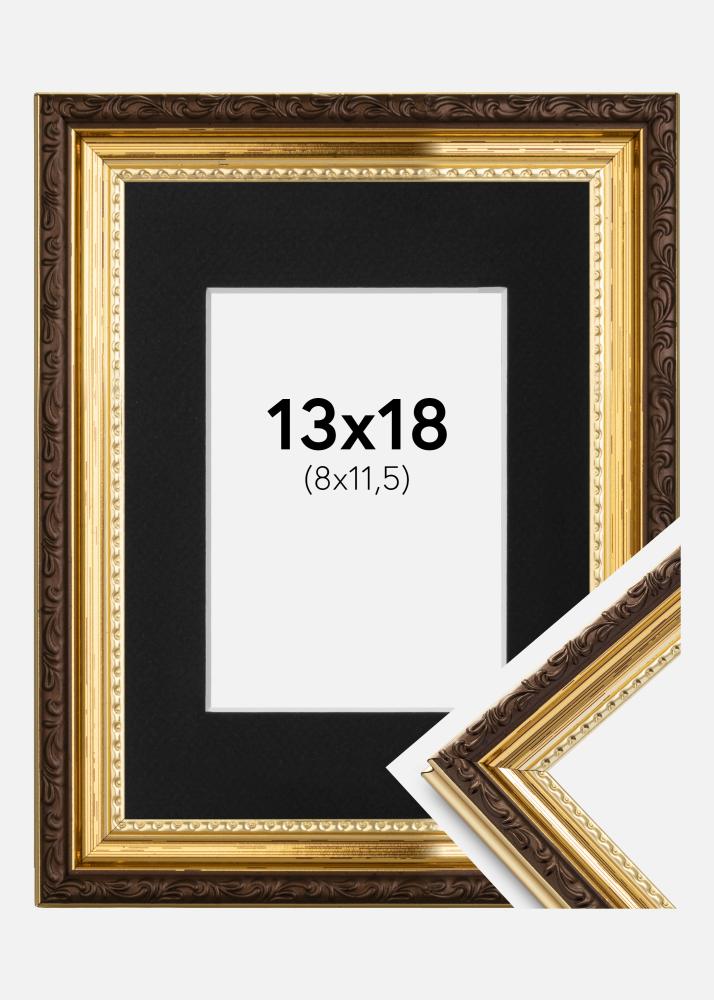 Przekształć swoje ulubione zdjęcie lub dzieło sztuki w prawdziwie przykuwającą uwagę ozdobę dzięki tej eleganckiej złotej ramce z czarnym passe-partout. Klasyczne połączenie złota i czerni nadaje luksusowe wrażenie, które uzupełnia i podkreśla obraz w środku. Dzięki rozmiarowi ramki, która pasuje do obrazu 9x12 cm, wybrany przez Ciebie motyw stanie się centrum uwagi.