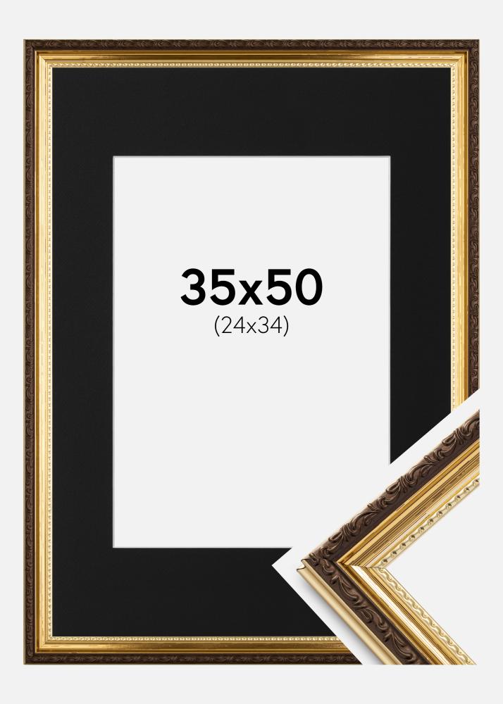 Z szerokością 25 mm i głębokością 20 mm rama daje solidne wrażenie, nie dominując jednocześnie. Czarne passe-partout i błyszcząca złota rama wzajemnie się uzupełniają, tworząc ponadczasową oprawę, która pasuje do każdego pomieszczenia i każdego domu.