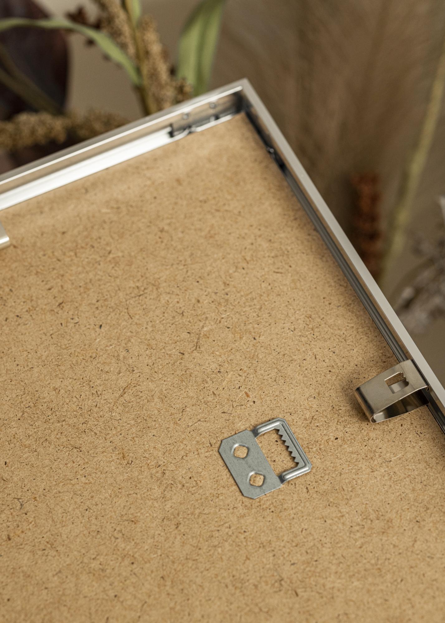 Dzięki dołączonym metalowym wieszakom z tyłu, możesz łatwo powiesić ramkę zarówno poziomo, jak i pionowo, co daje Ci elastyczność w dostosowaniu jej do Twojej przestrzeni i wizji projektowej. Przekształć swoje ściany w osobistą galerię dzięki tej stylowej srebrnej ramie z passe-partout.