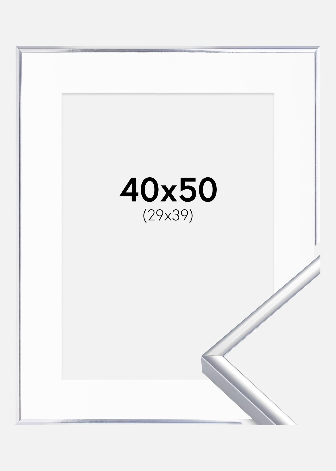 Rama Aluminium Srebrny Połysk 40x50 cm - Passe-patrout Biały 30x40 cm