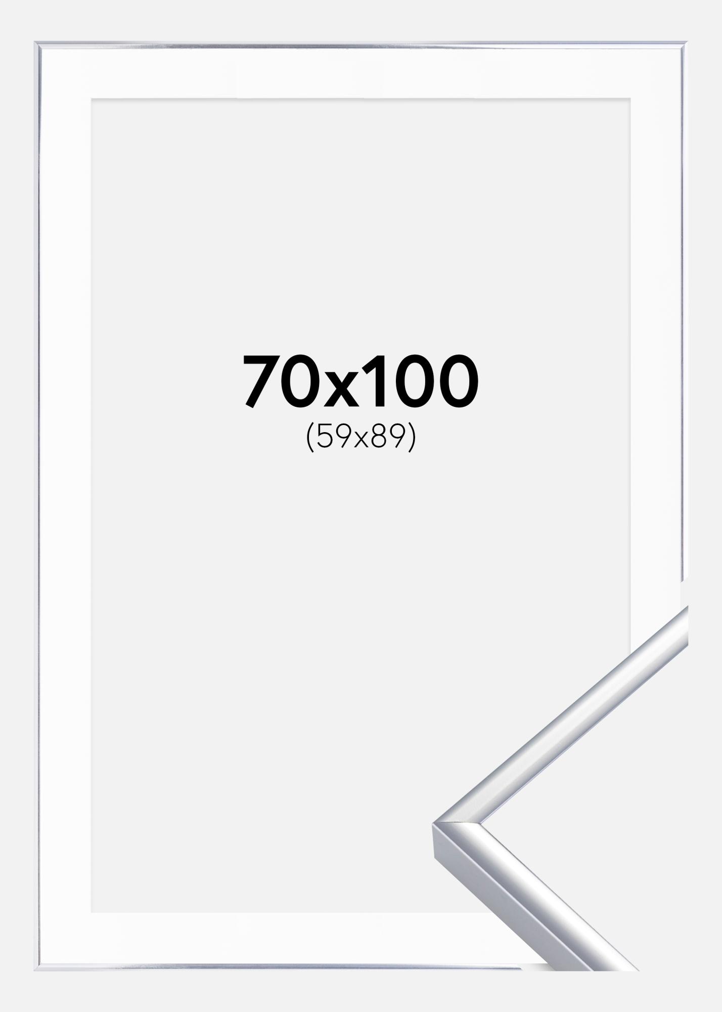 Rama Aluminium Srebrny Połysk 70x100 cm - Passe-patrout Biały 60x90 cm