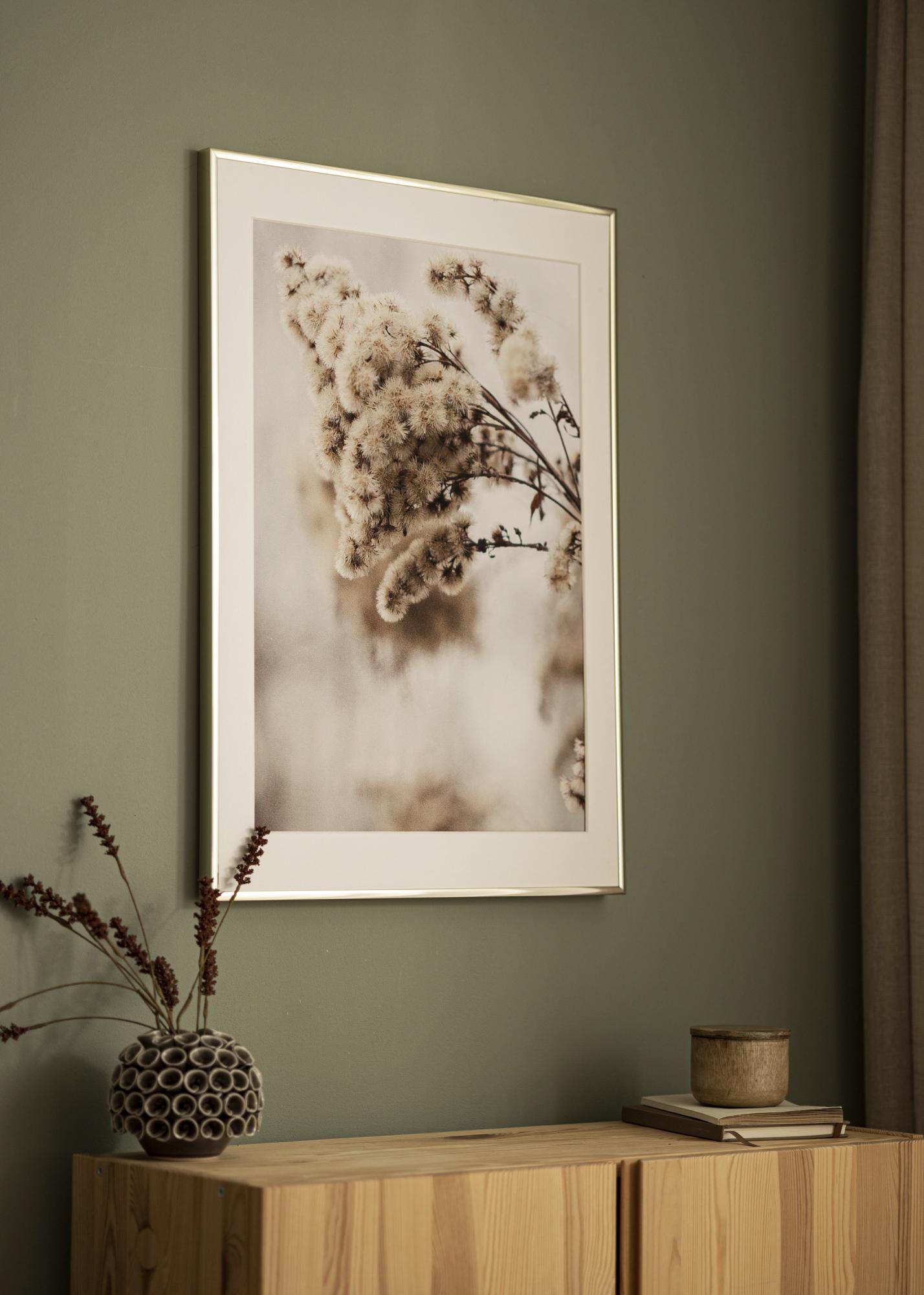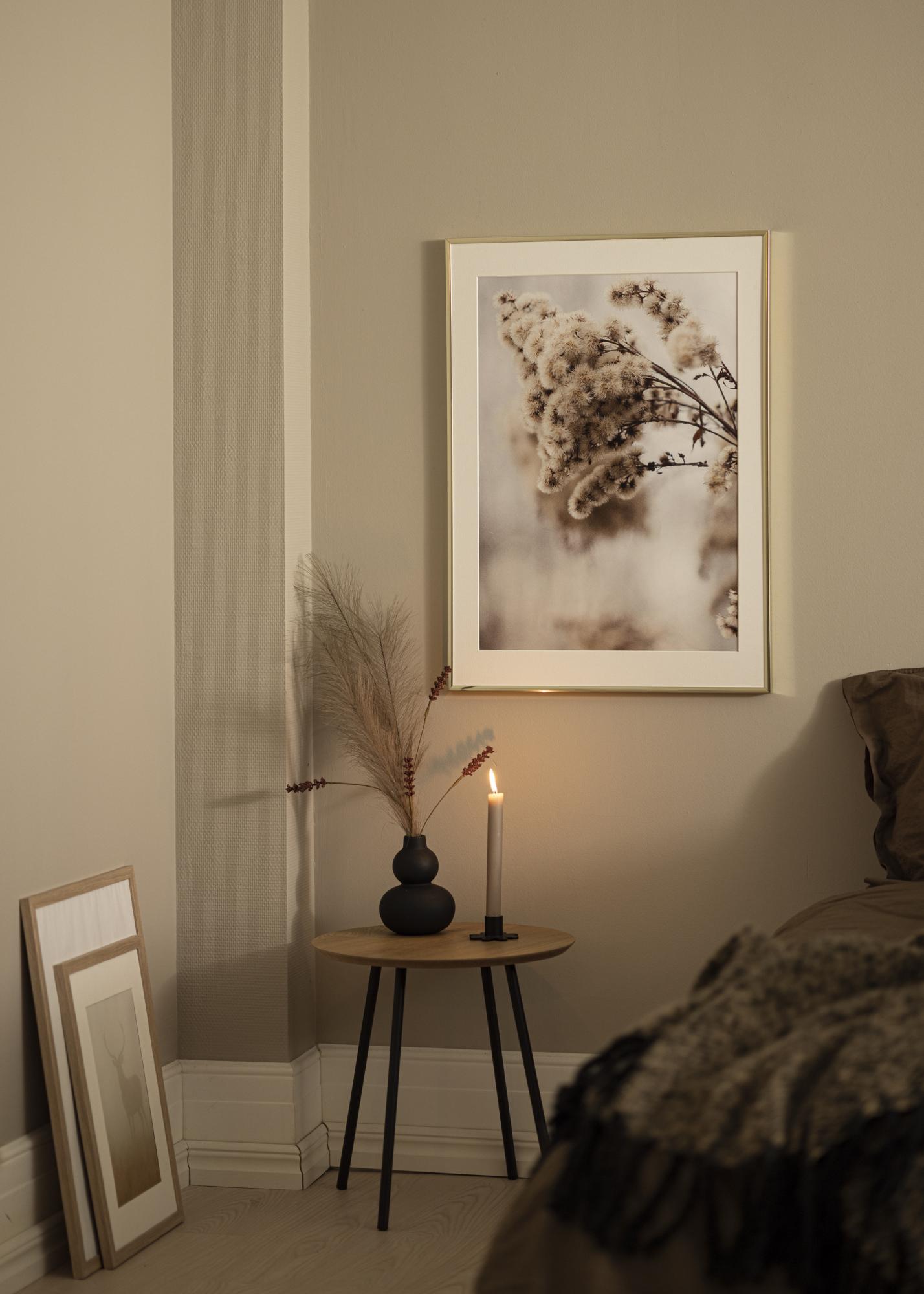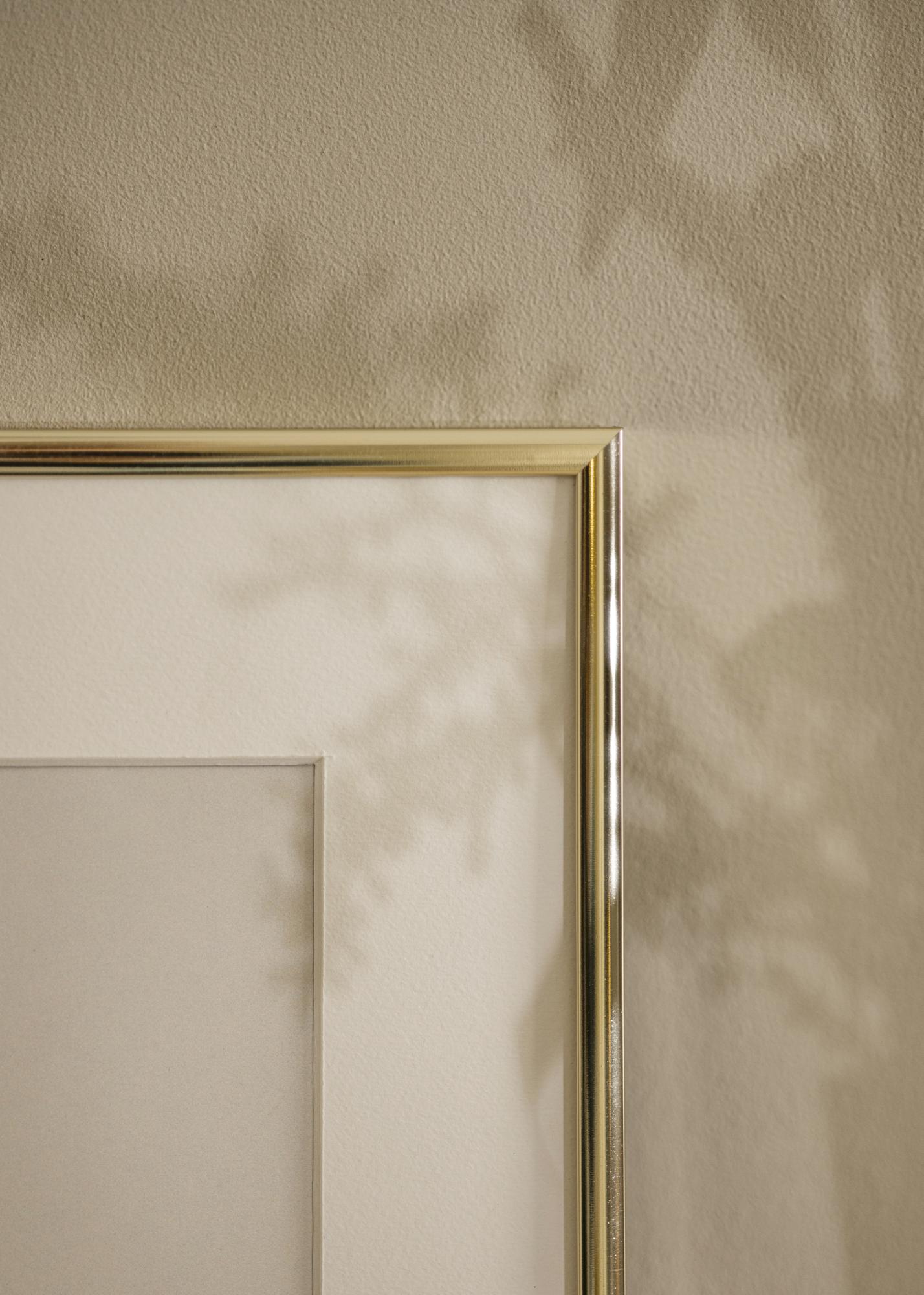 To jest cienka aluminiowa rama w elegancki, połyskujący złoty odcień. Cienka listwa ramy, mająca zaledwie 9 mm, sprawia, że główny nacisk położony jest na twoje motywy. Jest to idealne rozwiązanie, jeśli masz modne plakaty lub zdjęcia bliskich, które chcesz powiesić na ścianie.