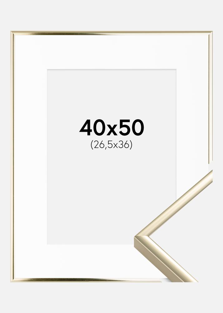 Rama Aluminium Złoty Połysk 40x50 cm - Passe-patrout Biały 27,5x37 cm