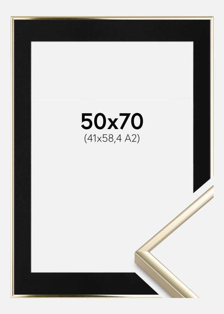 Rama Aluminium Złoty Połysk 50x70 cm - Passe-patrout Czarny 42x59,4 cm (A2)