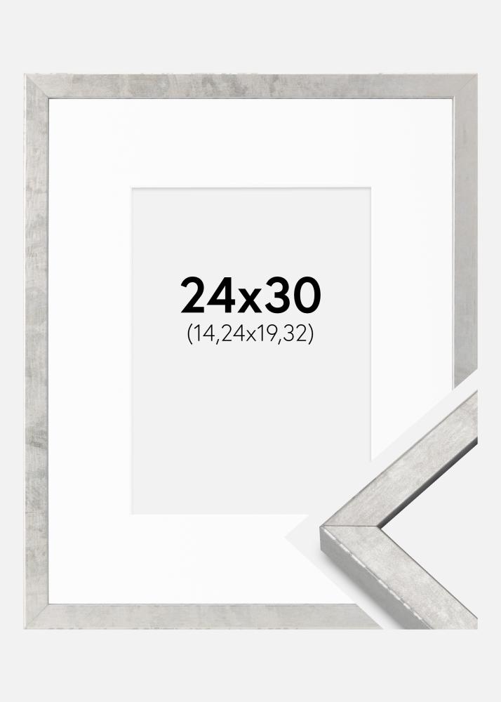 Ramka Ares Srebrny 24x30 cm - Passe-partout Biały 6x8 cali
