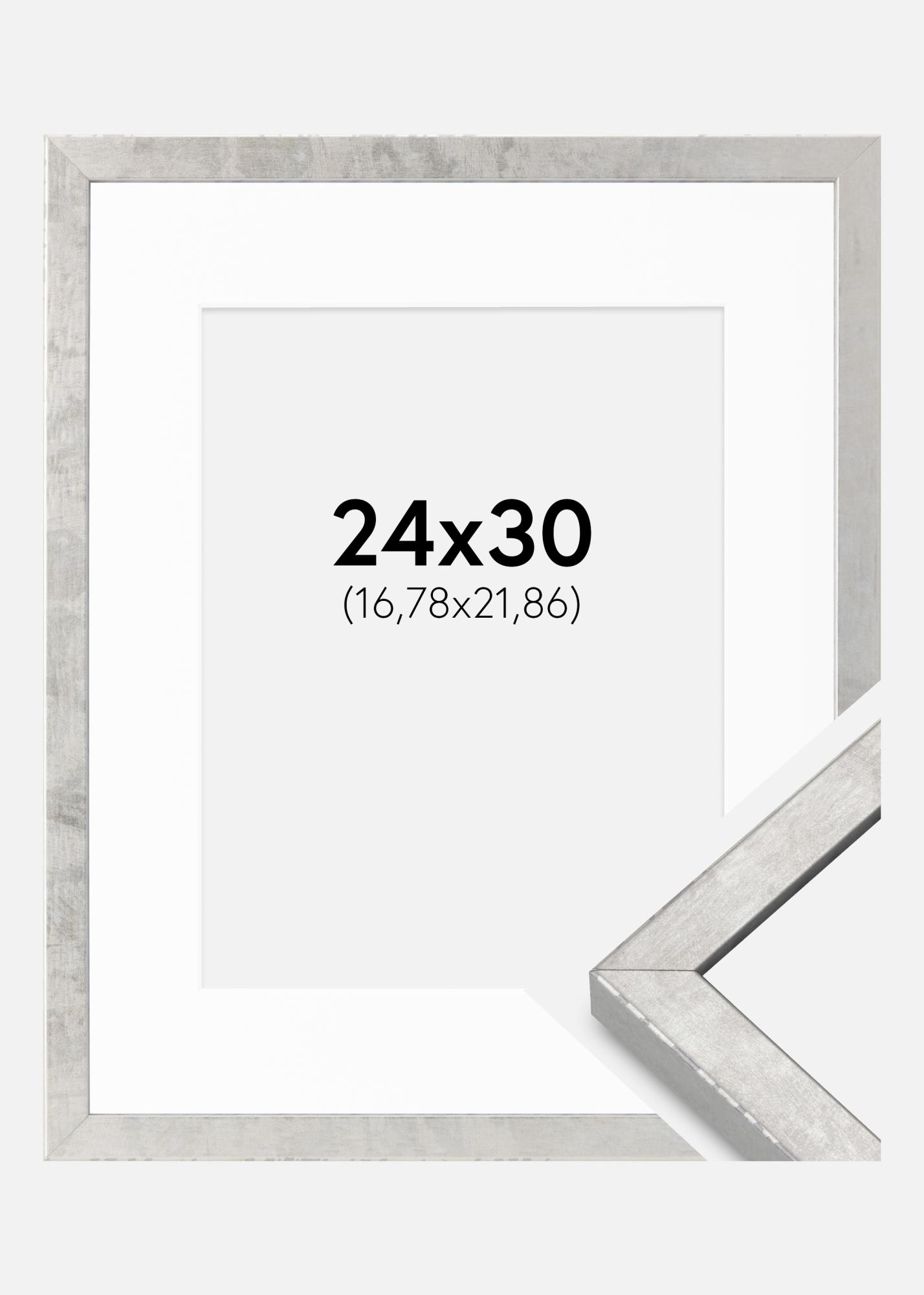 Ramka Ares Srebrny 24x30 cm - Passe-partout Biały 7x9 cali
