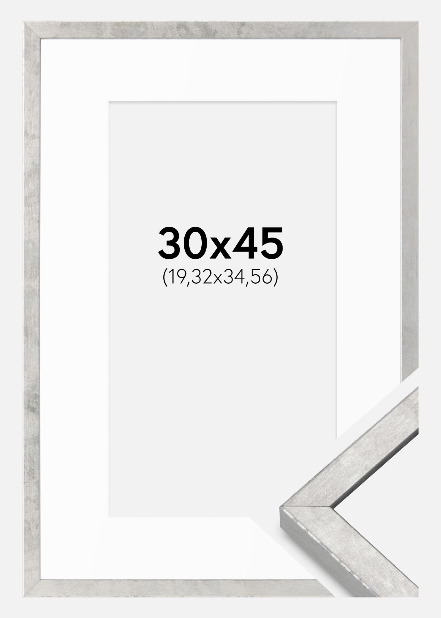 Ramka Ares Srebrny 30x45 cm - Passe-partout Biały 8x14 cali