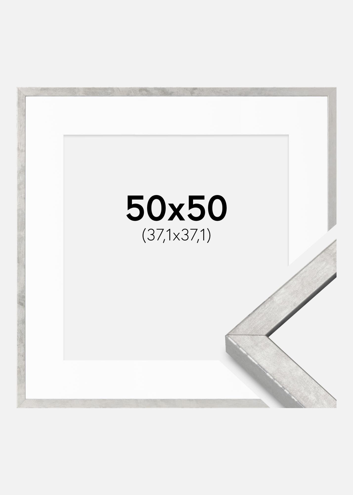 Ramka Ares Srebrny 50x50 cm - Passe-partout Biały 15x15 cali