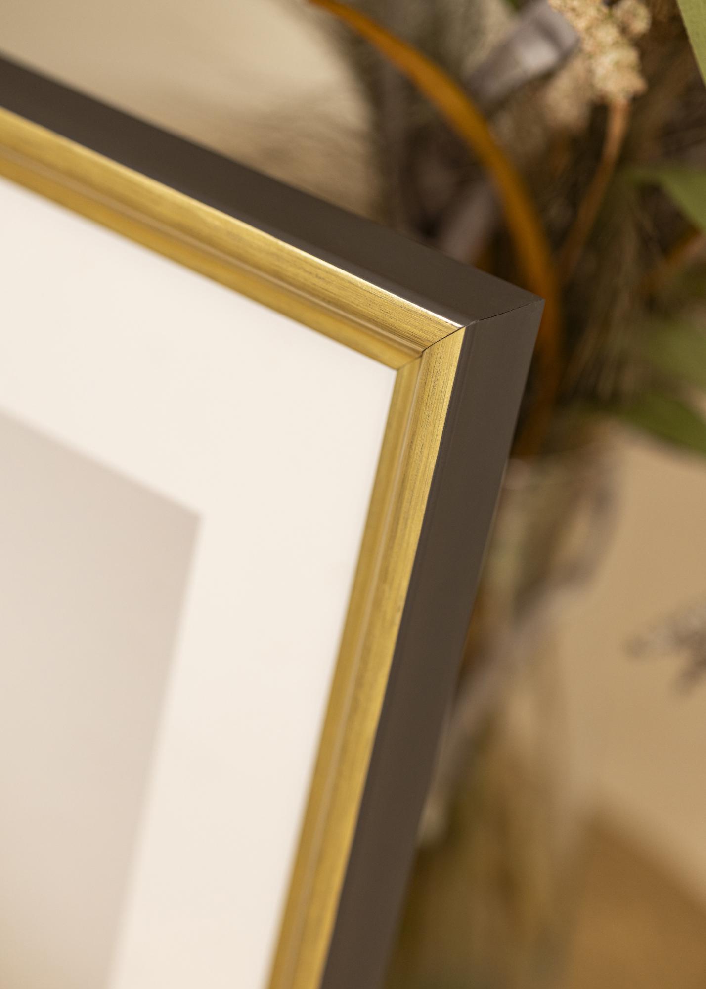 Elegancka złota ramka średniej wielkości, która pasuje do prawie każdego rodzaju motywów i kontekstów. Ramka ma przyjemny złoty kolor z czarnymi tonami, co daje przyjemne i subtelne wrażenie.
