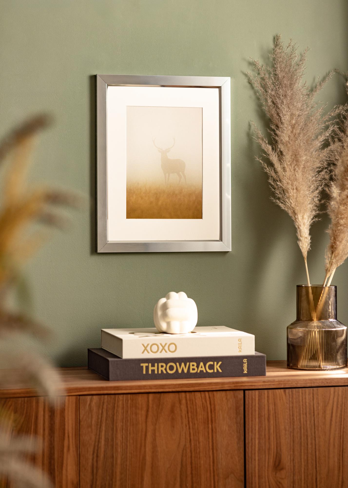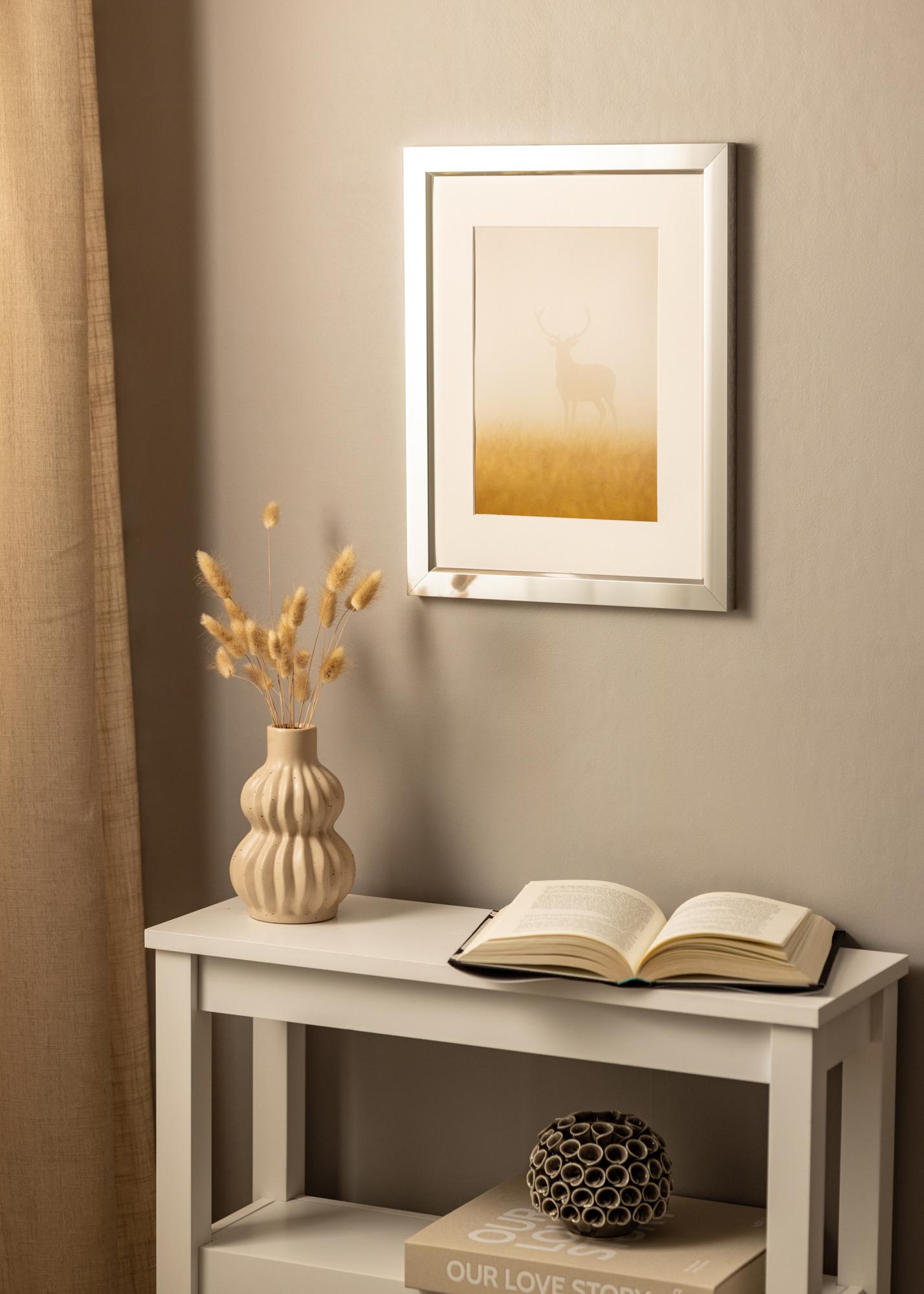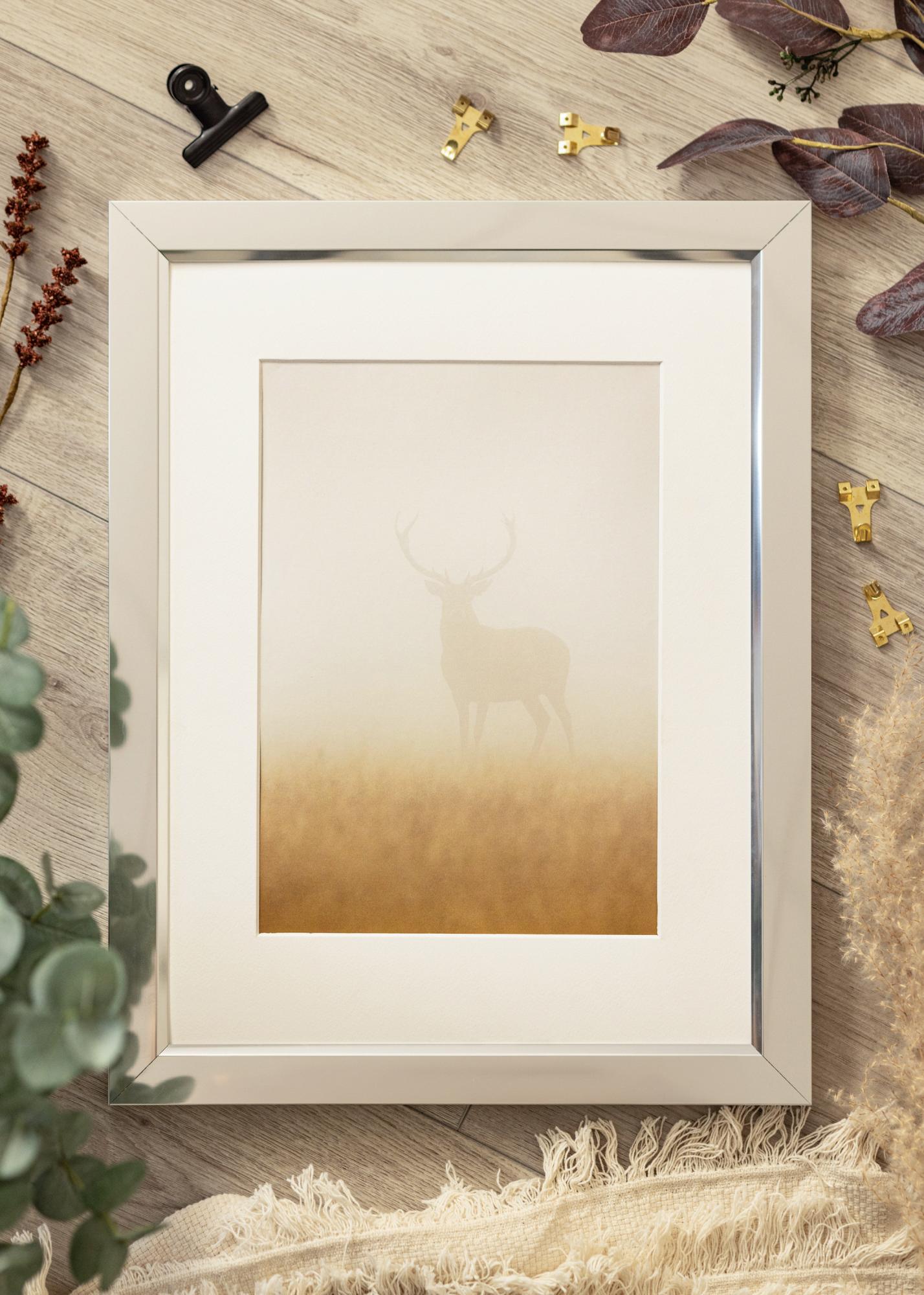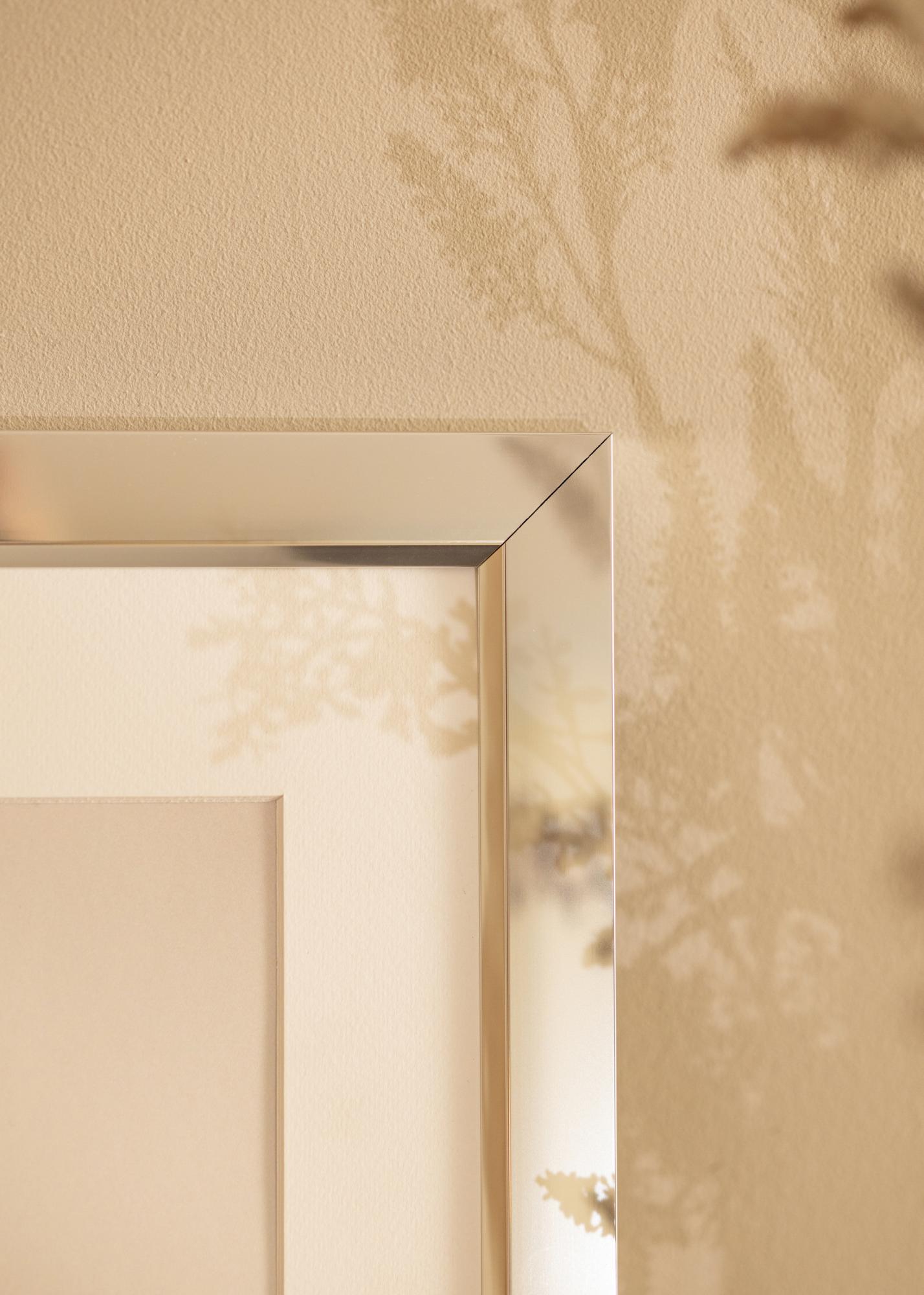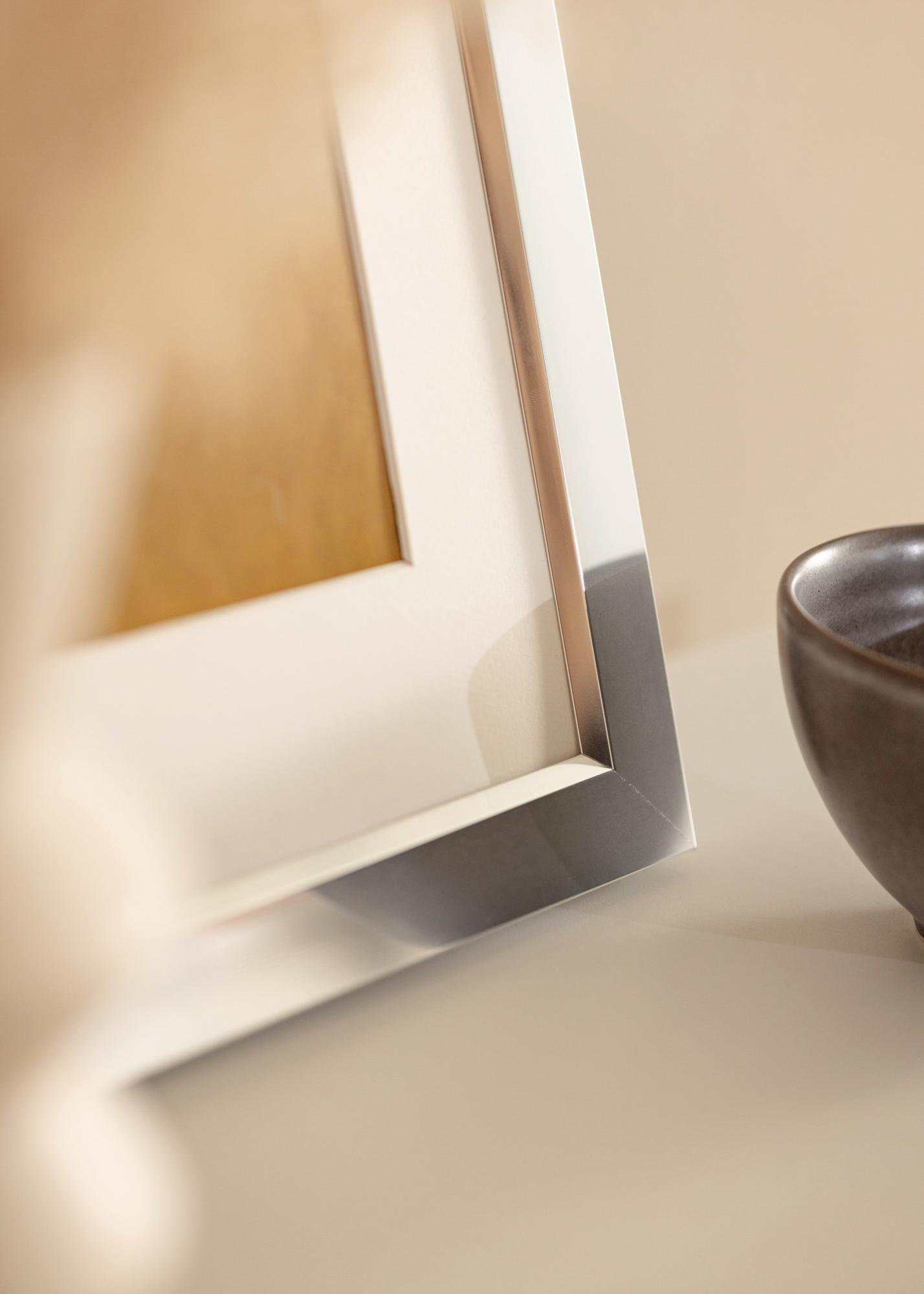 Elegancka, błyszcząca srebrna rama z lustrzanym efektem, składająca się z wysokiej jakości listwy wykonanej z aluminium w Niemczech. Jej wysoki połysk przyciąga wzrok i odbija światło w piękny sposób, kierując uwagę na motyw. Minimalistyczny styl ramy sprawia, że doskonale pasuje do nowoczesnych wnętrz, ale może również stanowić stylowy akcent w innych stylach wystroju. Uzupełnij ramę o passe-partout, aby obraz nabrał pełnego wyrazu.