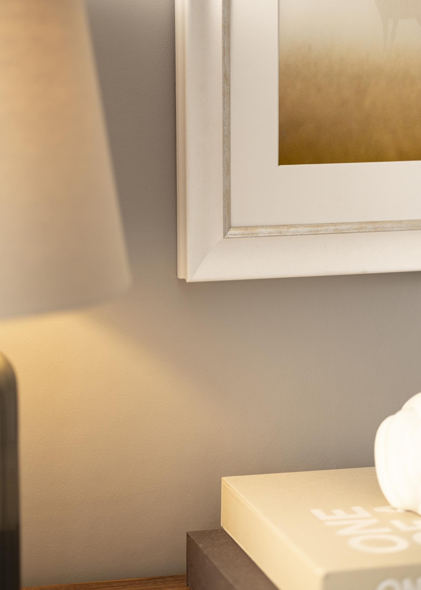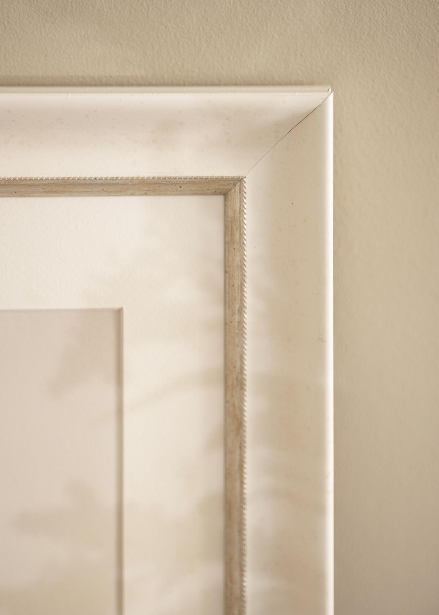 Solidna rama w dowolnym rozmiarze z białym klasycznym profilem. Najbliżej motywu znajduje się elegancka srebrna krawędź, która nadaje ramie dodatkowego blasku.